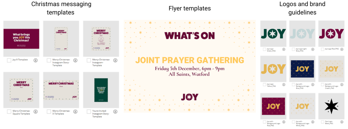 - Logos and brand guidelines: Available in various formats for both print and digital use. Logo packs for digital and print in PNG, JPG and EPS format are available to download now. The brand guidelines are designed to assist churches and organisations in making the most of the spectacular The Joy of Christmas branding, including colour palettes and approved fonts.