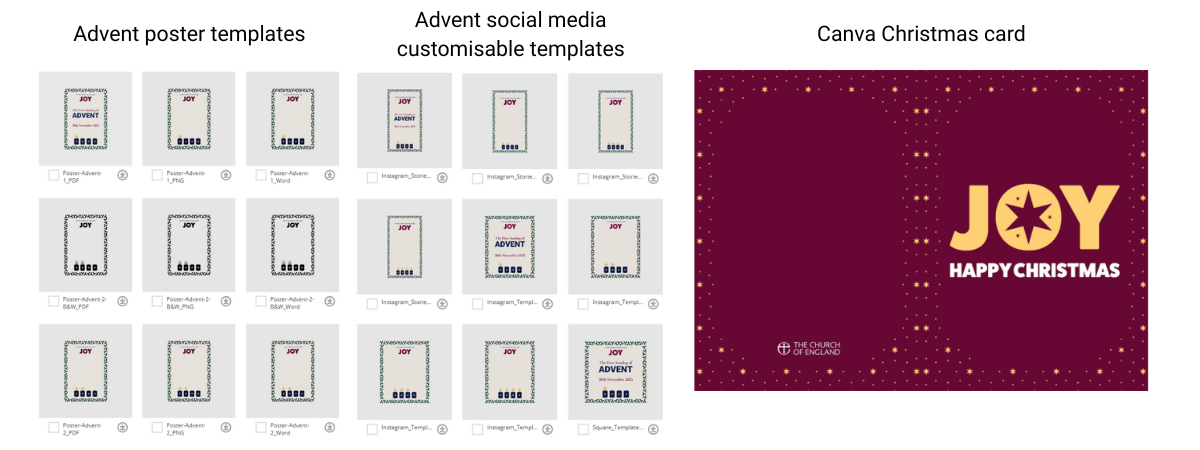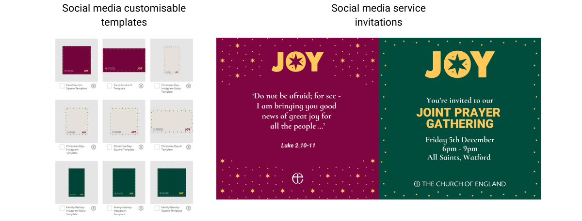- Poster service invitations: This year we have included more tailored templates for your services throughout Advent and Christmas, which include posters for your carol services, Midnight Mass services and other key services around this time of the year.