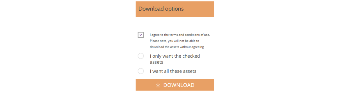 - If you only want some of the resources, tick the boxes next to the items you wish to download and then choose 'I only want the checked assets' in the Download options box.