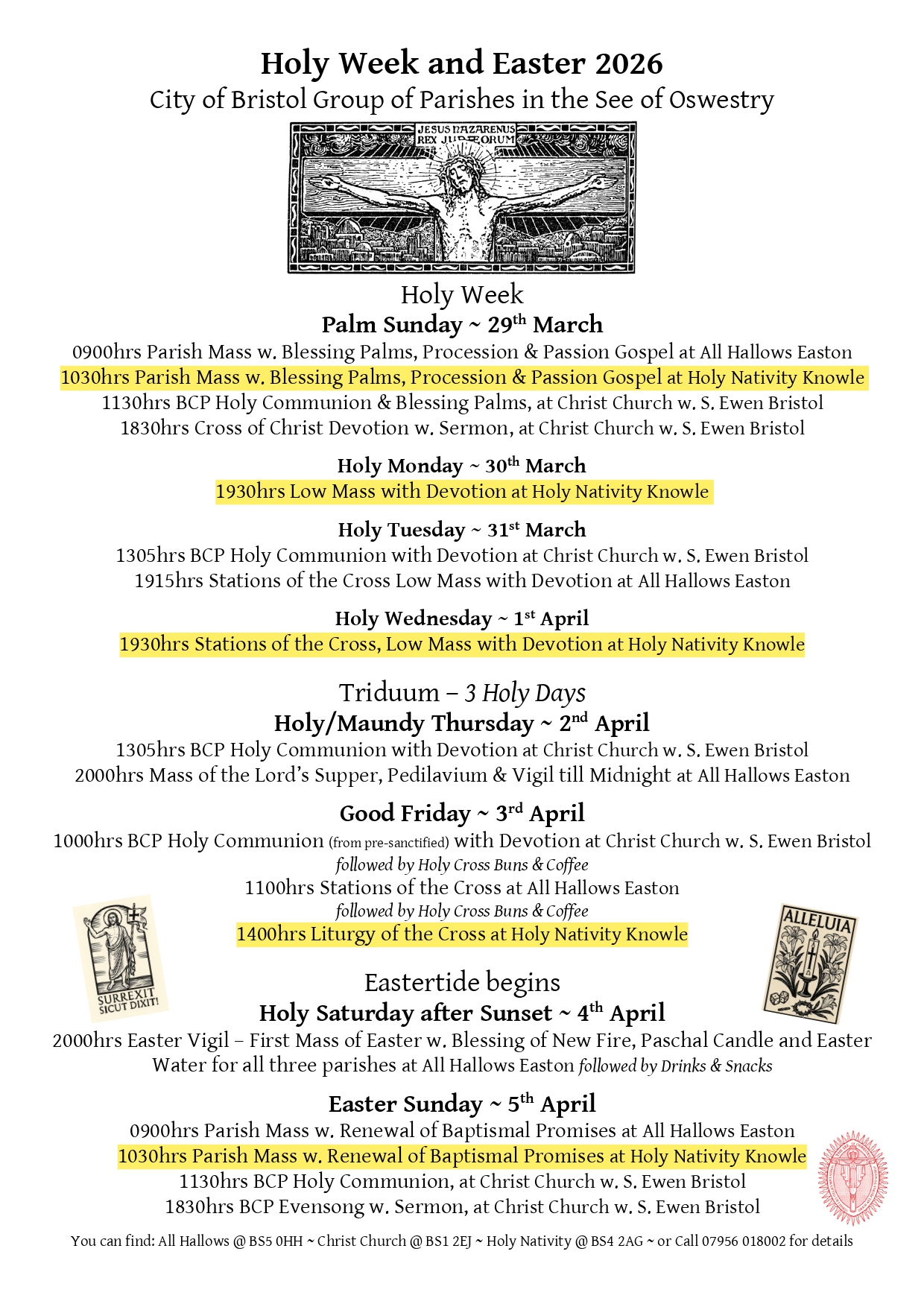 Please click 'DOWNLOAD' to see the schedule of Holy Week liturgies across Fr Simon's 3 churches. Holy Nativity will be hosting on Sunday, Monday, Wednesday and Friday. You are encouraged to join our friends at All Hallows Easton on Maundy Thursday and Holy Saturday evenings.
