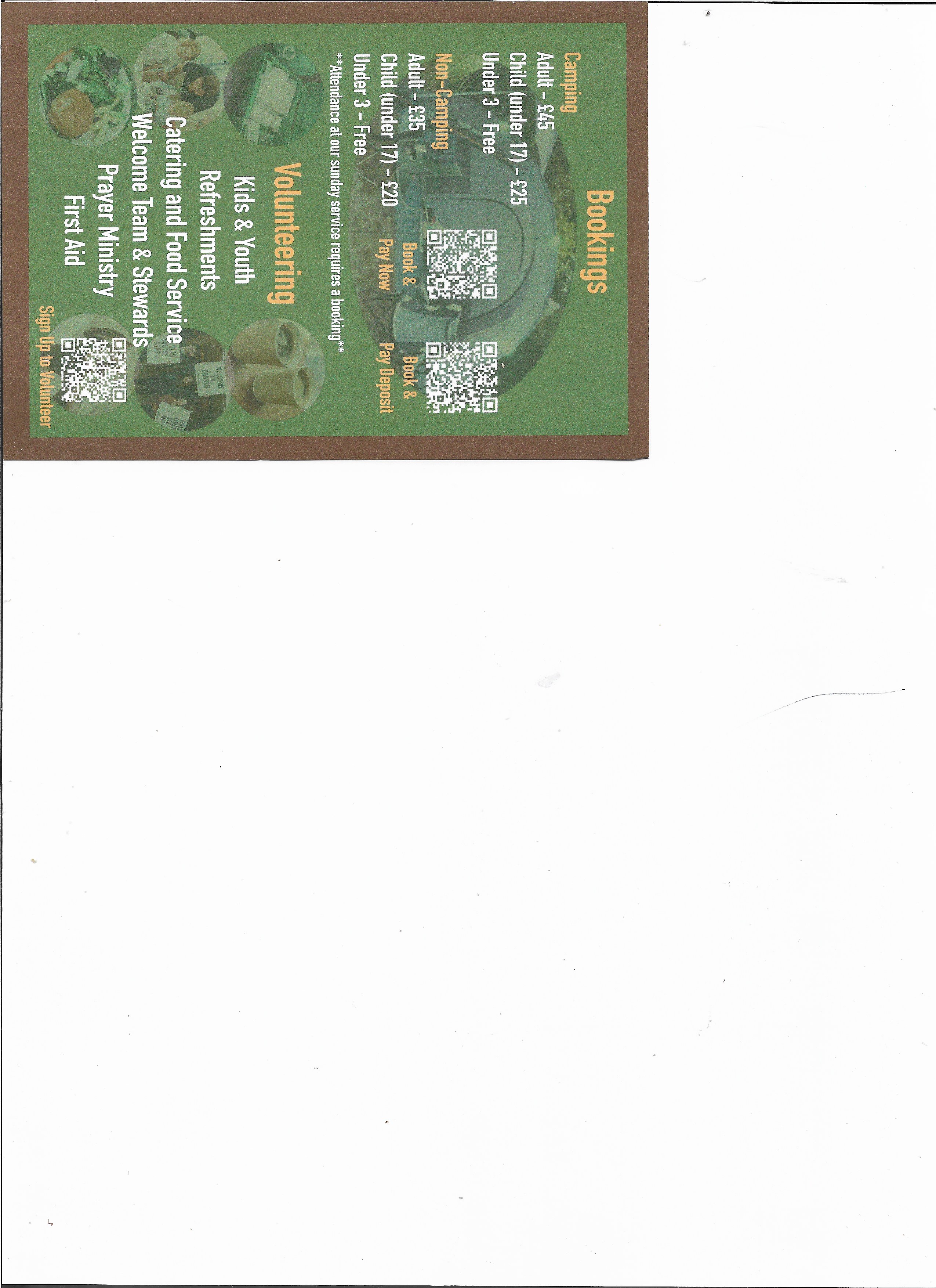 non camping adult £35 child under 17 £20 under3 free