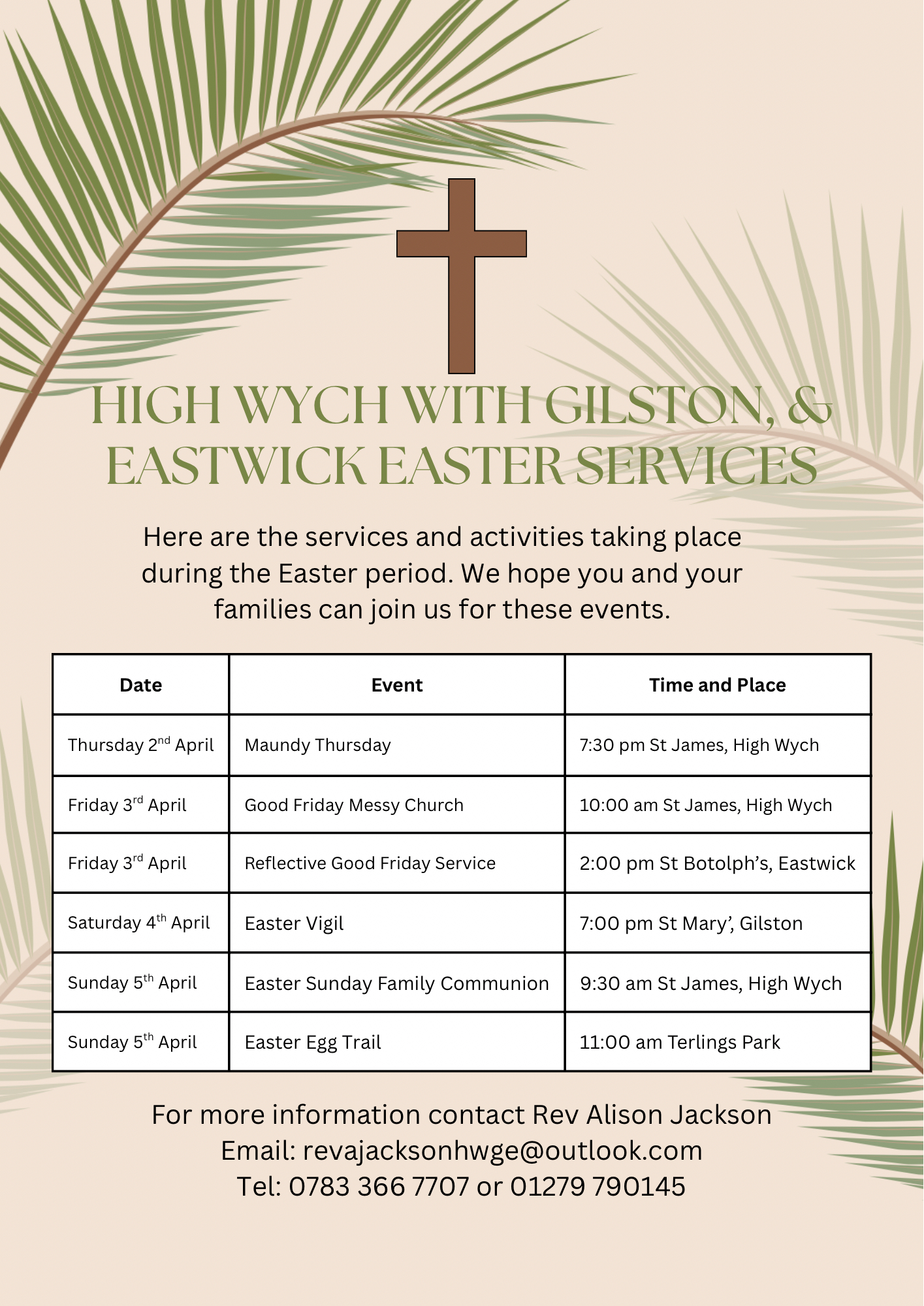 I hope to see you on Sunday for the start of Holy Week and our special Palm Sunday service at St James, High Wych at 9.30 am.