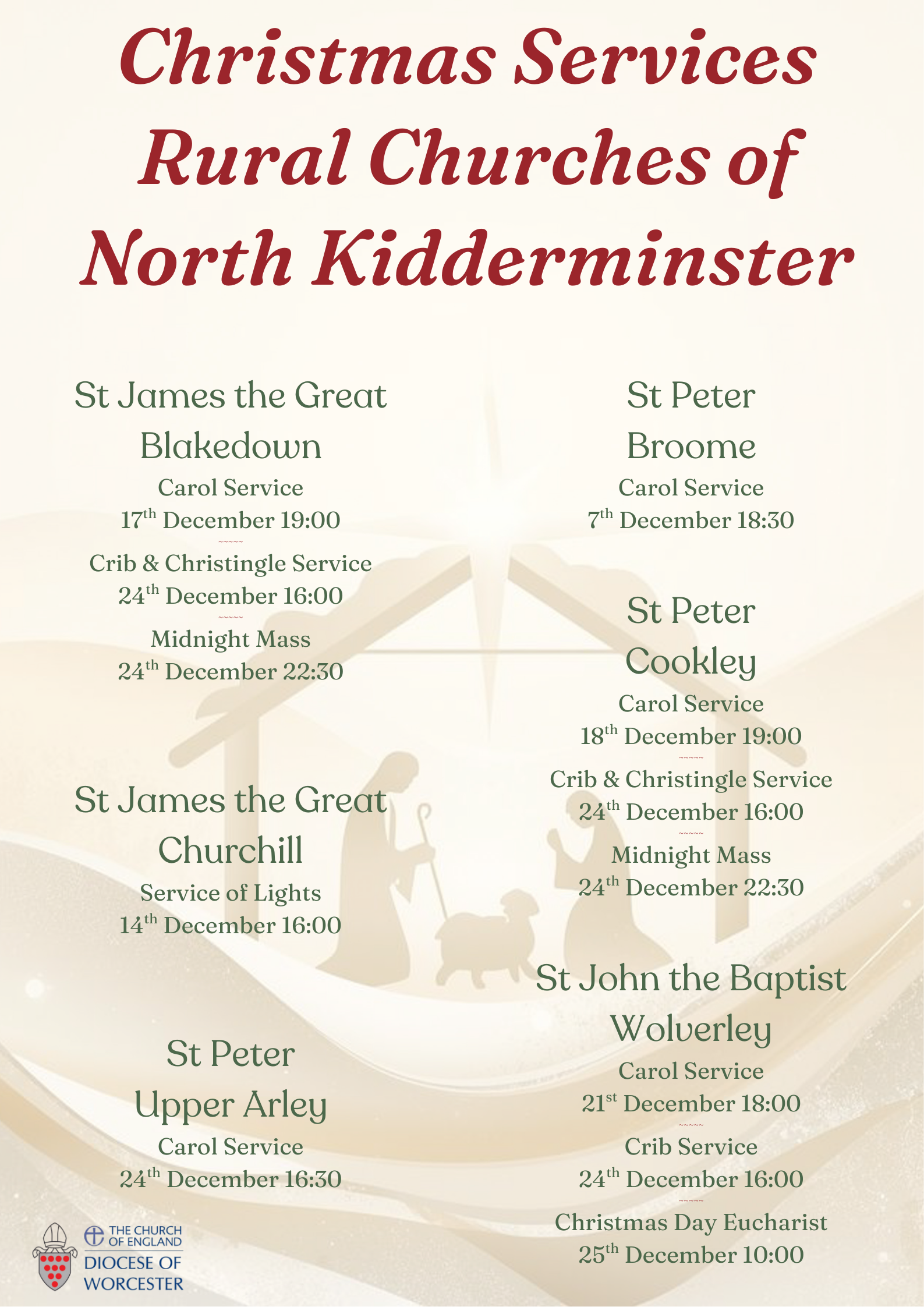 Church Christmas Services in Cookley, Upper Arley and Wolverley 2025