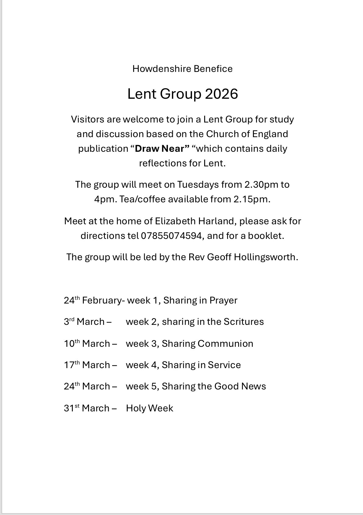 A Sung Eucharist with the Blessing and Imposition of Ashes to mark the start of Lent will take place in Howden Minster at 7.30pm on Wednesday 18th February.