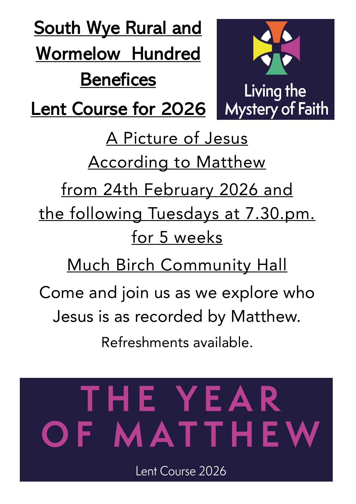 Join us for either Morning Prayer (Jan, March and November) or Holy Communion (Feb, April, June and August) as we worship together. Our service on December 28th will be at St Junabius, Llandinabo, at 10.30 a.m. with our friends from the Wormelow Hundred Benefice.