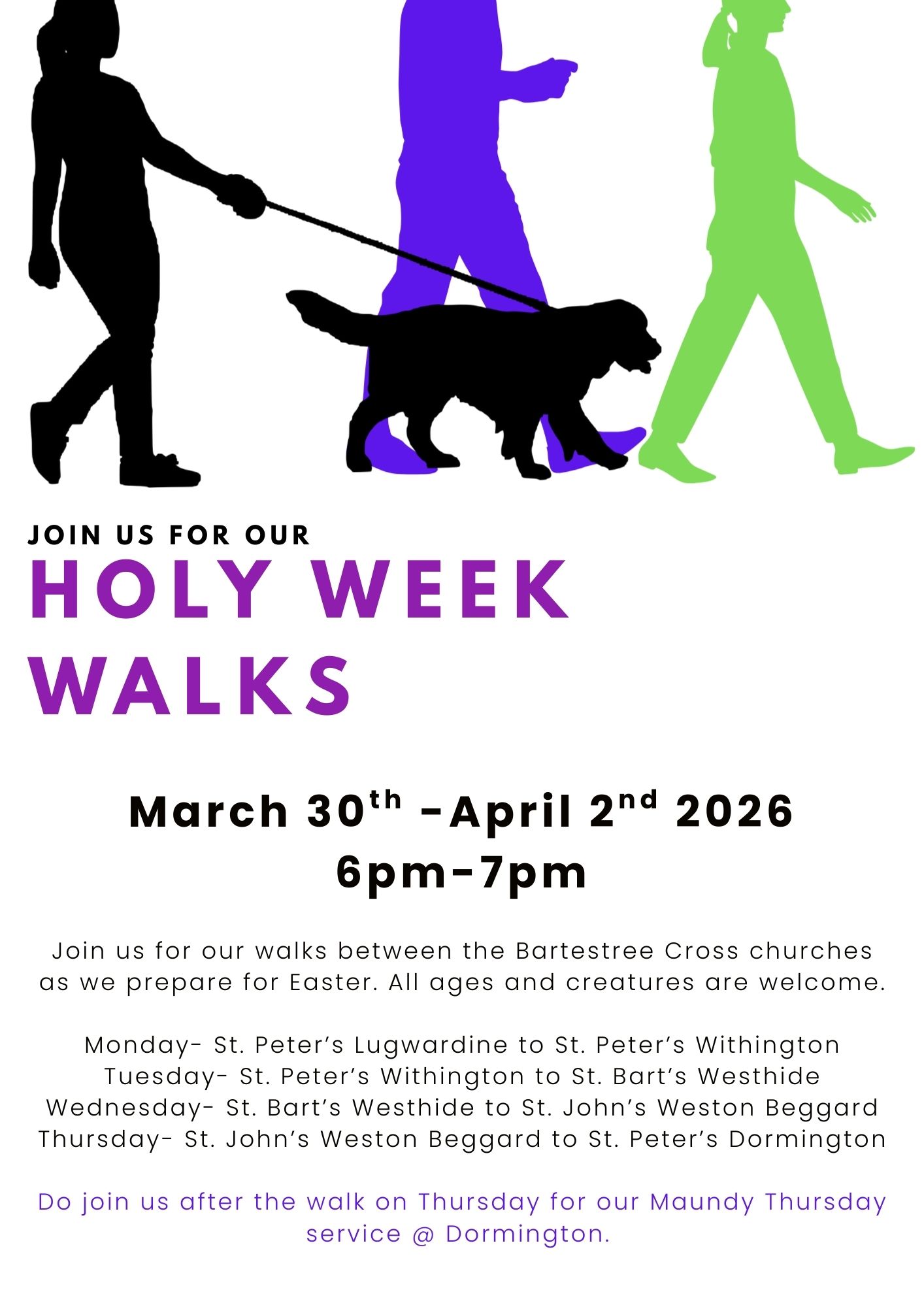 Do join us after the walk on Thursday for our Maundy Thursday service @ Dormington.