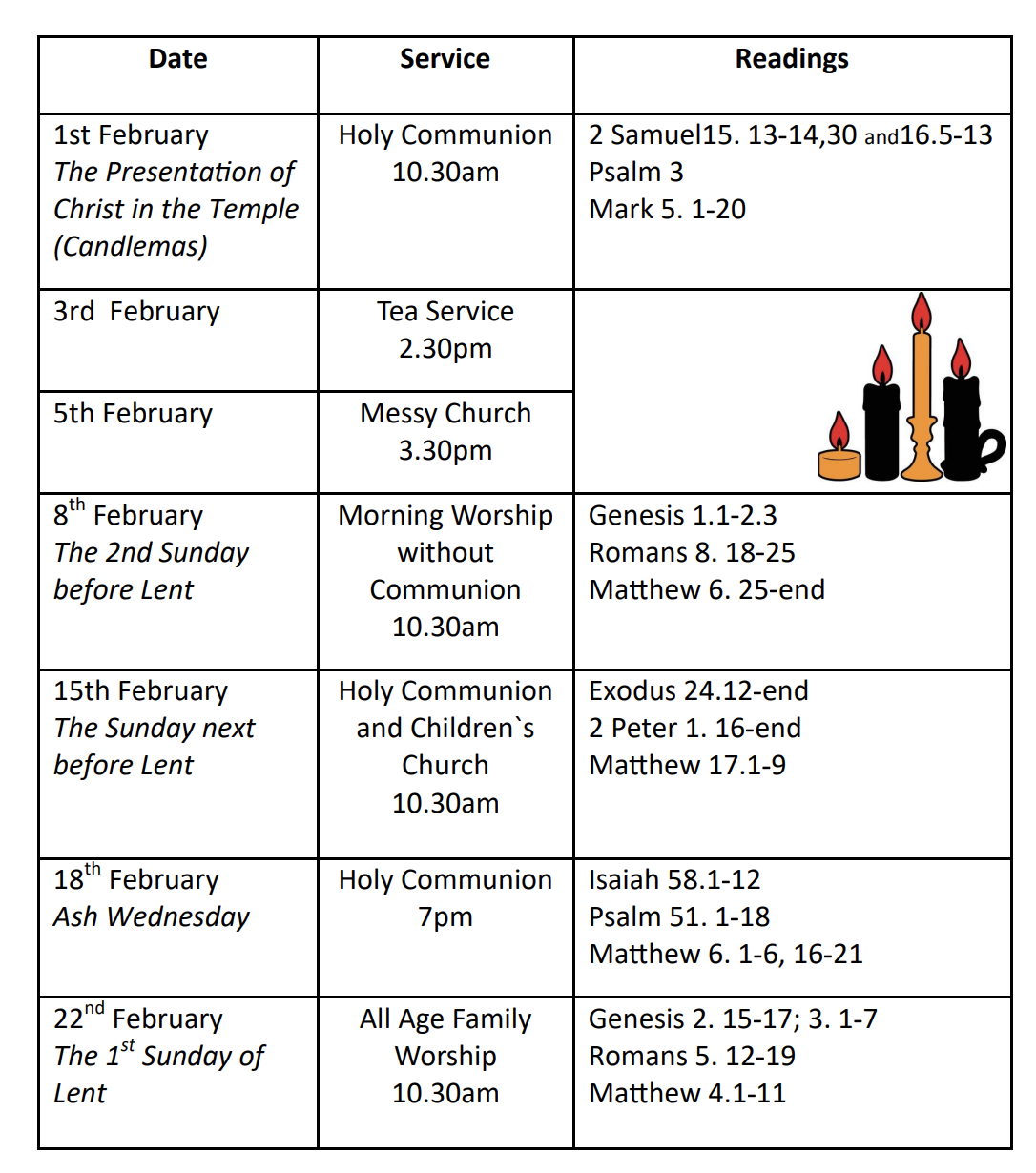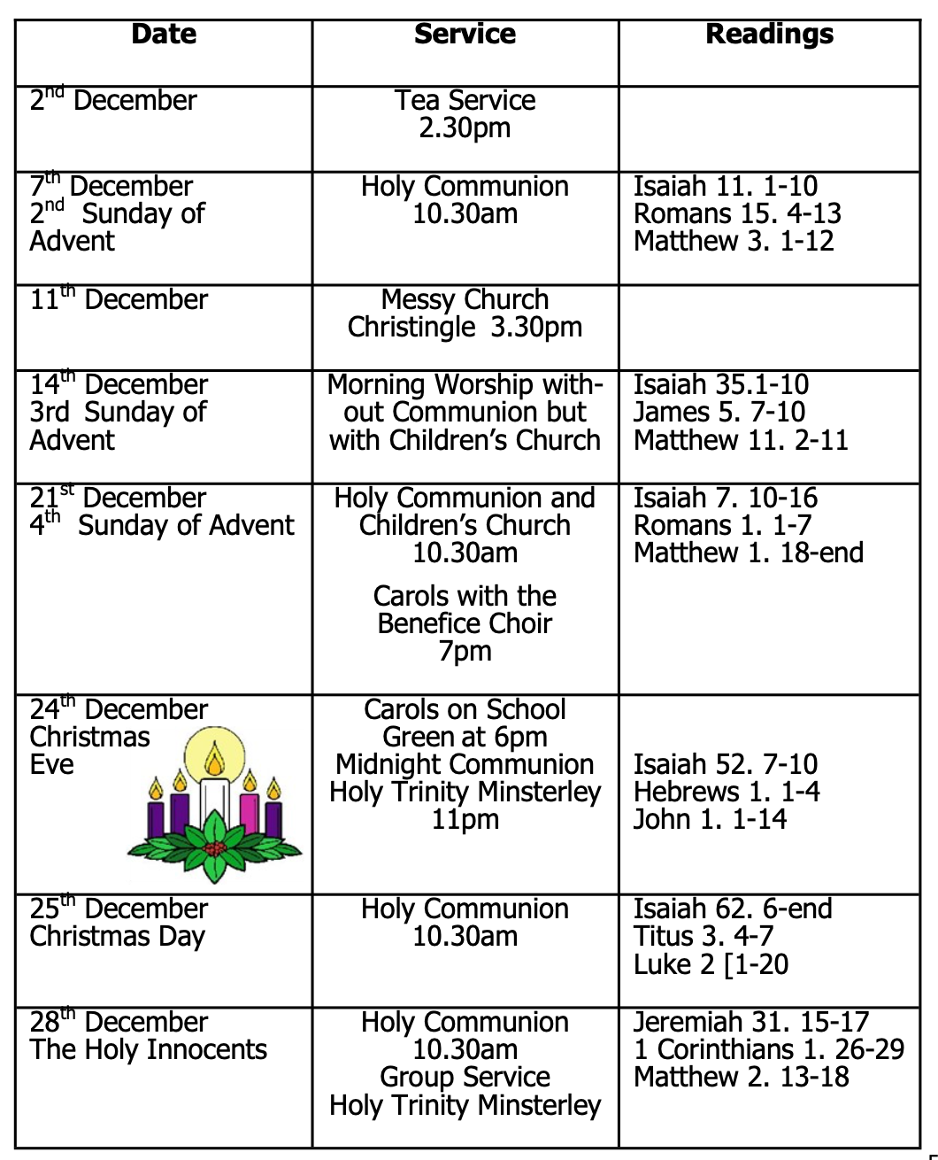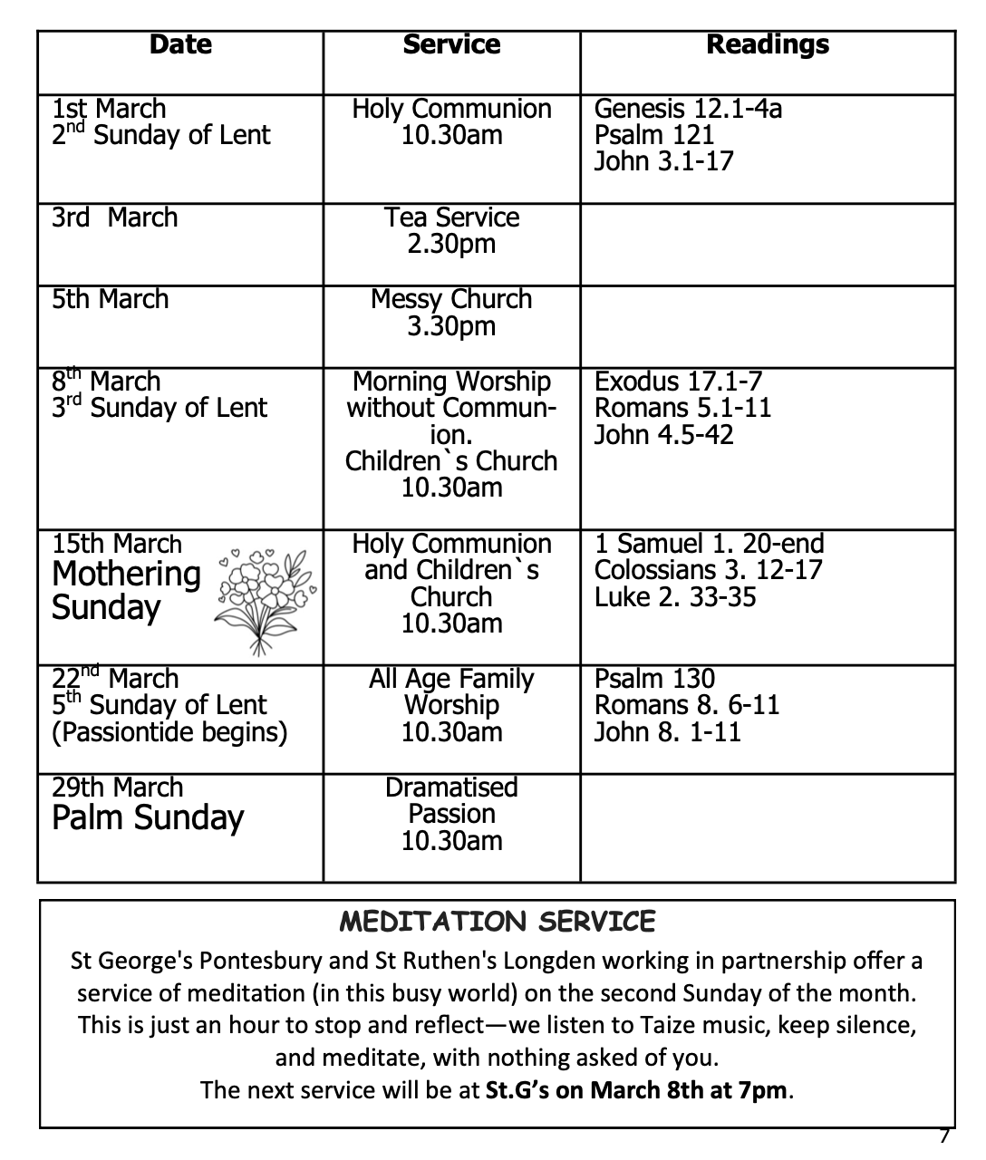 <h4>These are the services held at St Georges this month, detailed in a photo file. It can be downloaded by clicking the link below. </h4><h4><b>Please note that 5th week services are held around the Benefice churches, not necessarily in St George's</b></h4><h4><br>To access the readings, please go to the Church Readings This Month page.</h4>