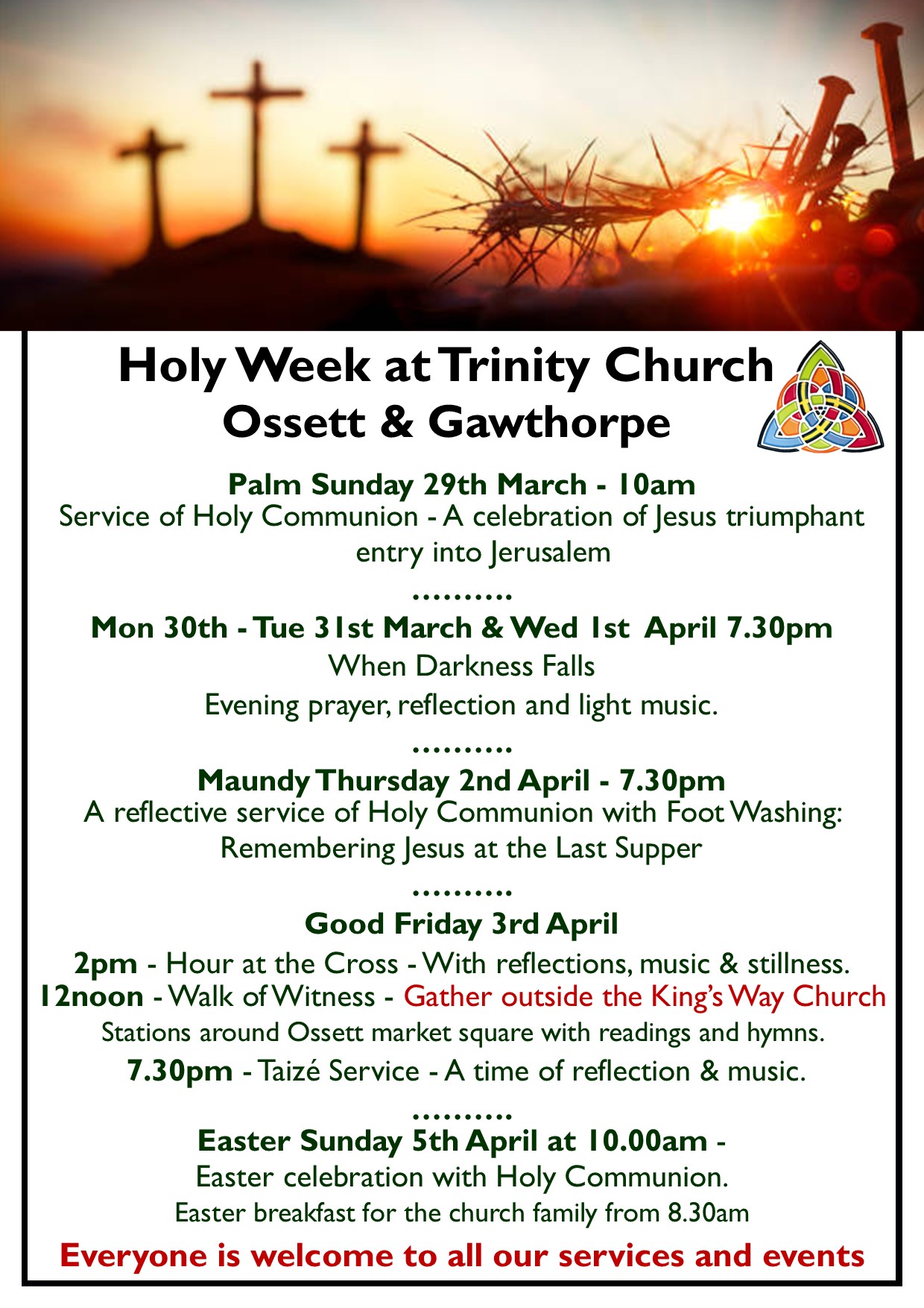 In Holy Week we gather around ancient stories that still speak into modern lives—stories of courage, compassion, betrayal, forgiveness, and astonishing love. At Trinity Church, we open our doors and our hearts to walk this path together. You’re invited to be part of the journey.