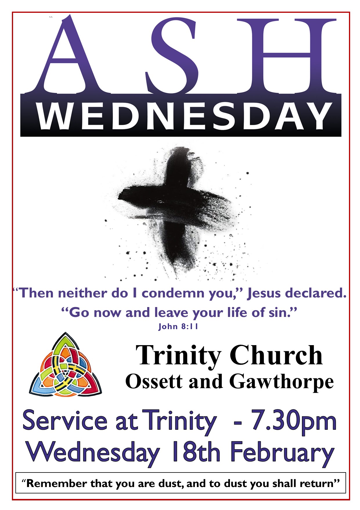 Ash Wednesday Service 18th February 7.30pm