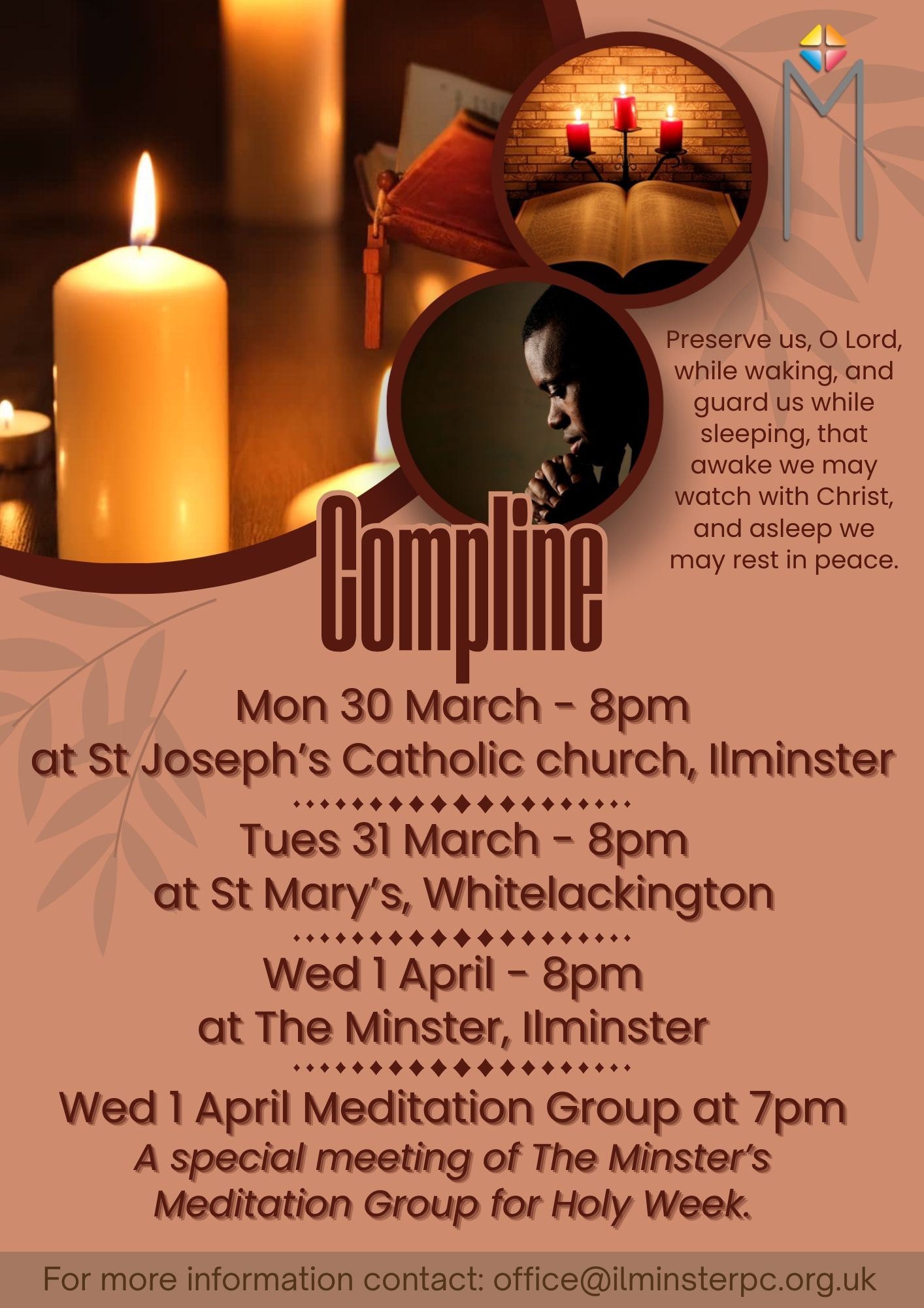 An ecumenical service of quietness and reflection before rest at the end of the day.