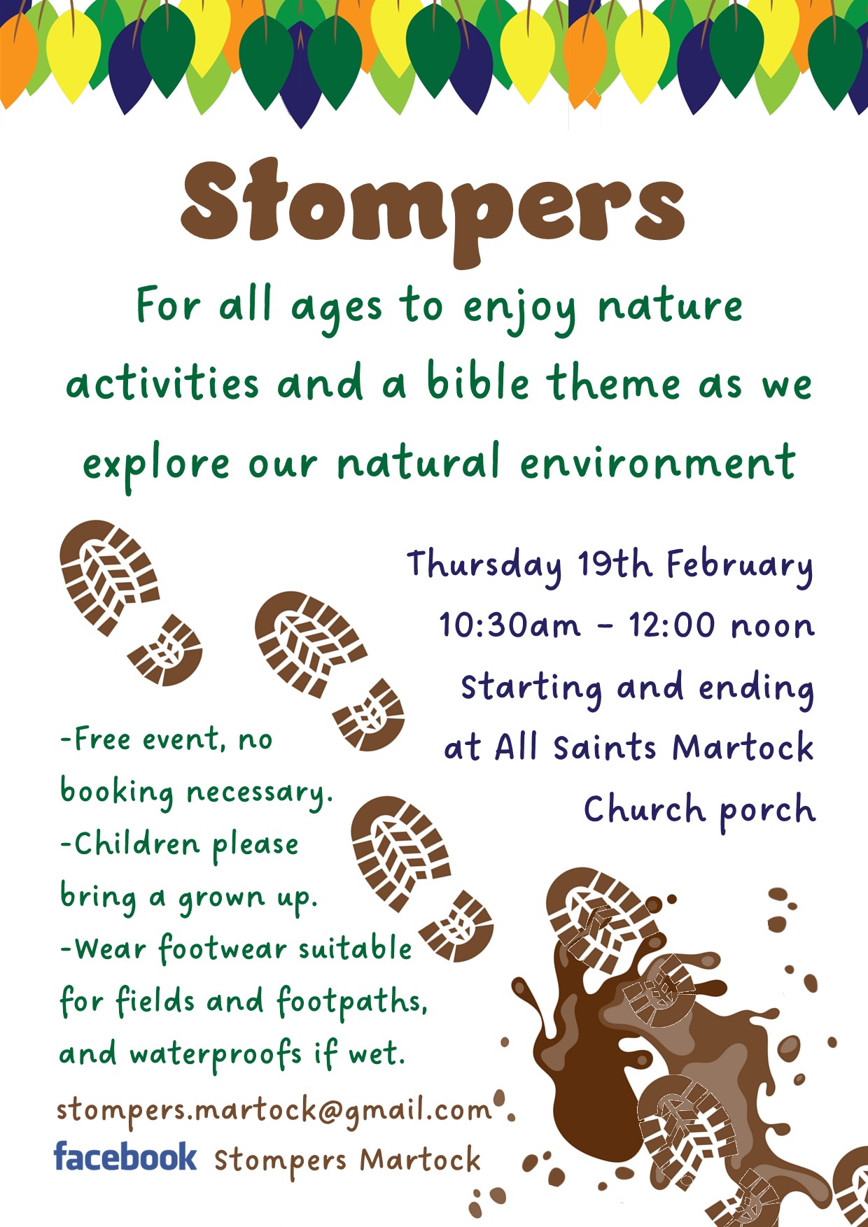 FEBRUARY HALF TERM : Thursday 19 February 2026 starting at 10.30am to 12noon from the porch doorway of All Saints' church in Martock - an outdoor activity for all children to enjoy a bible theme as they explore the natural environment. More info from [email protected] or on facebook stompers martock