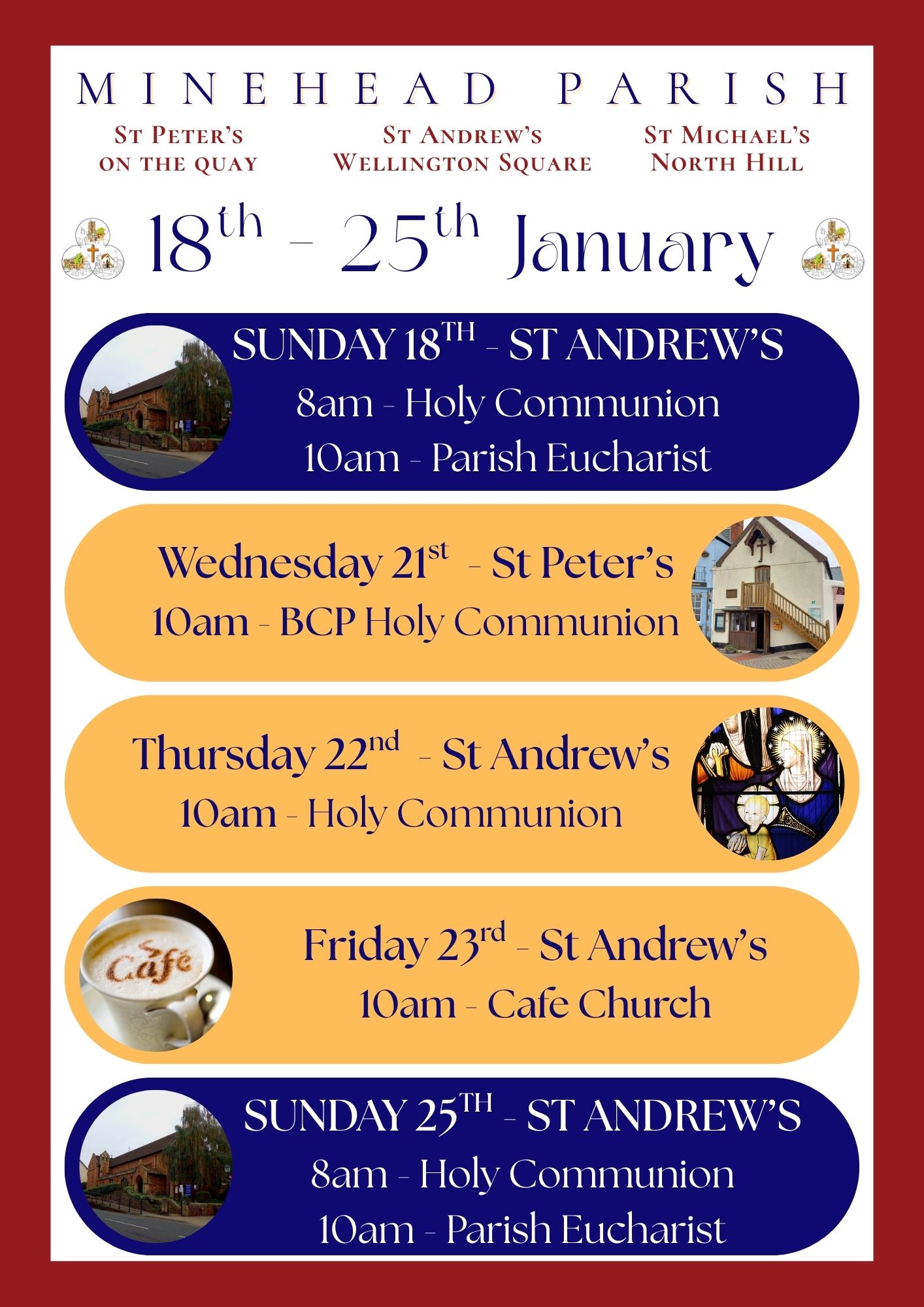 Services for the week 18-25 January 2026 - ALL WELCOME!