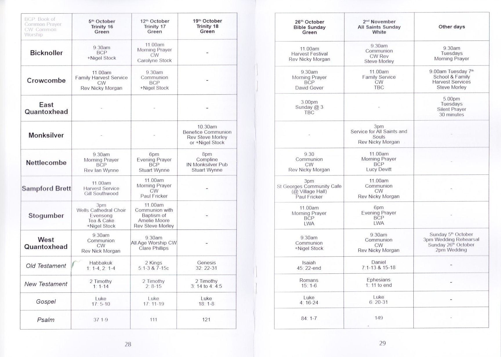 By downloading the scan below you will have access to the monthly service schedule in the Quantock Towers Benefice.