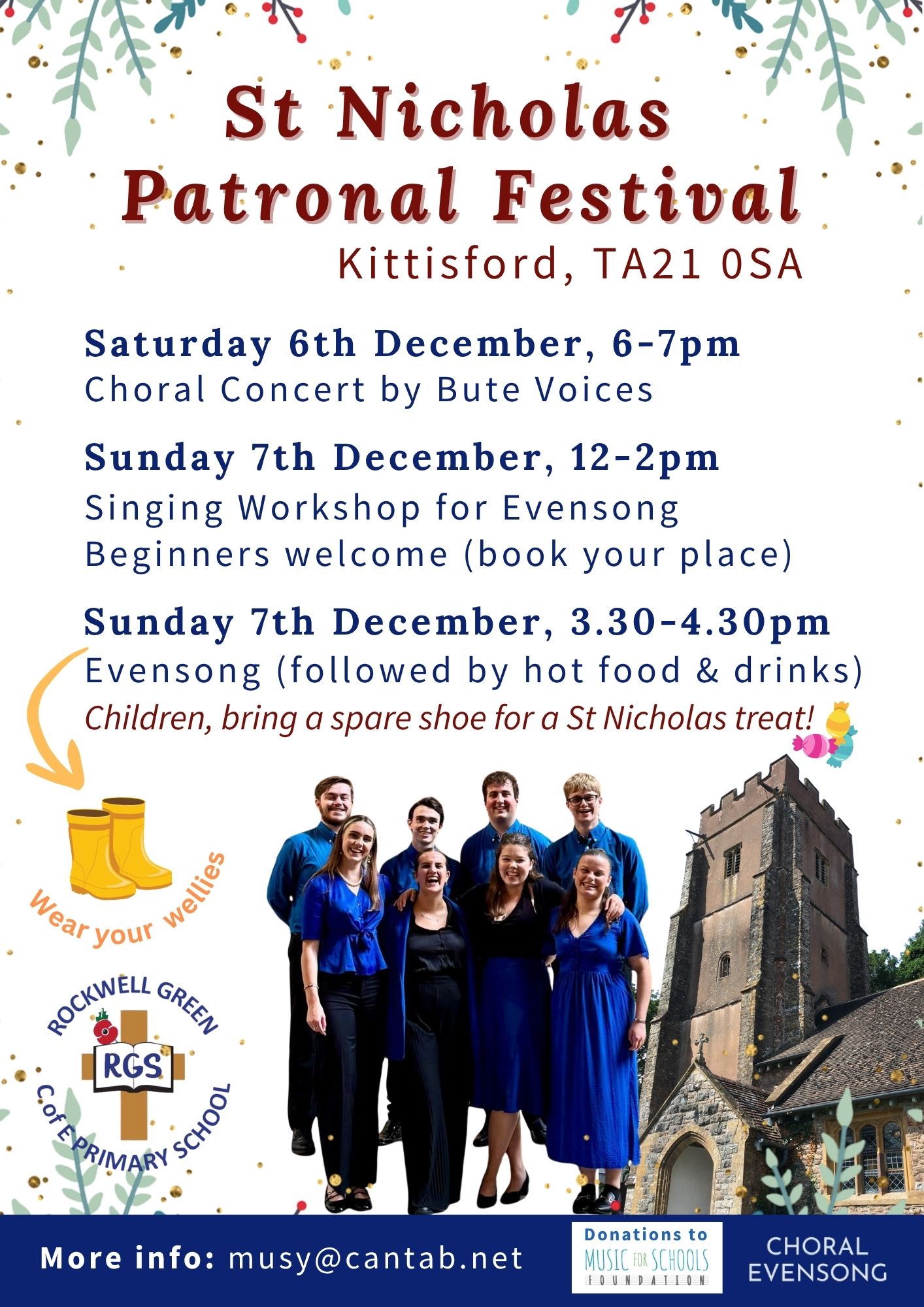 A weekend of music and celebration. St Nicholas Festival is being supported by the Choral Evensong Trust. There will be a Choral Concert on Saturday evening at 6 pm until 7 pm by the Bute Voices from the Royal Welsh College of Music and Drama in Cardiff