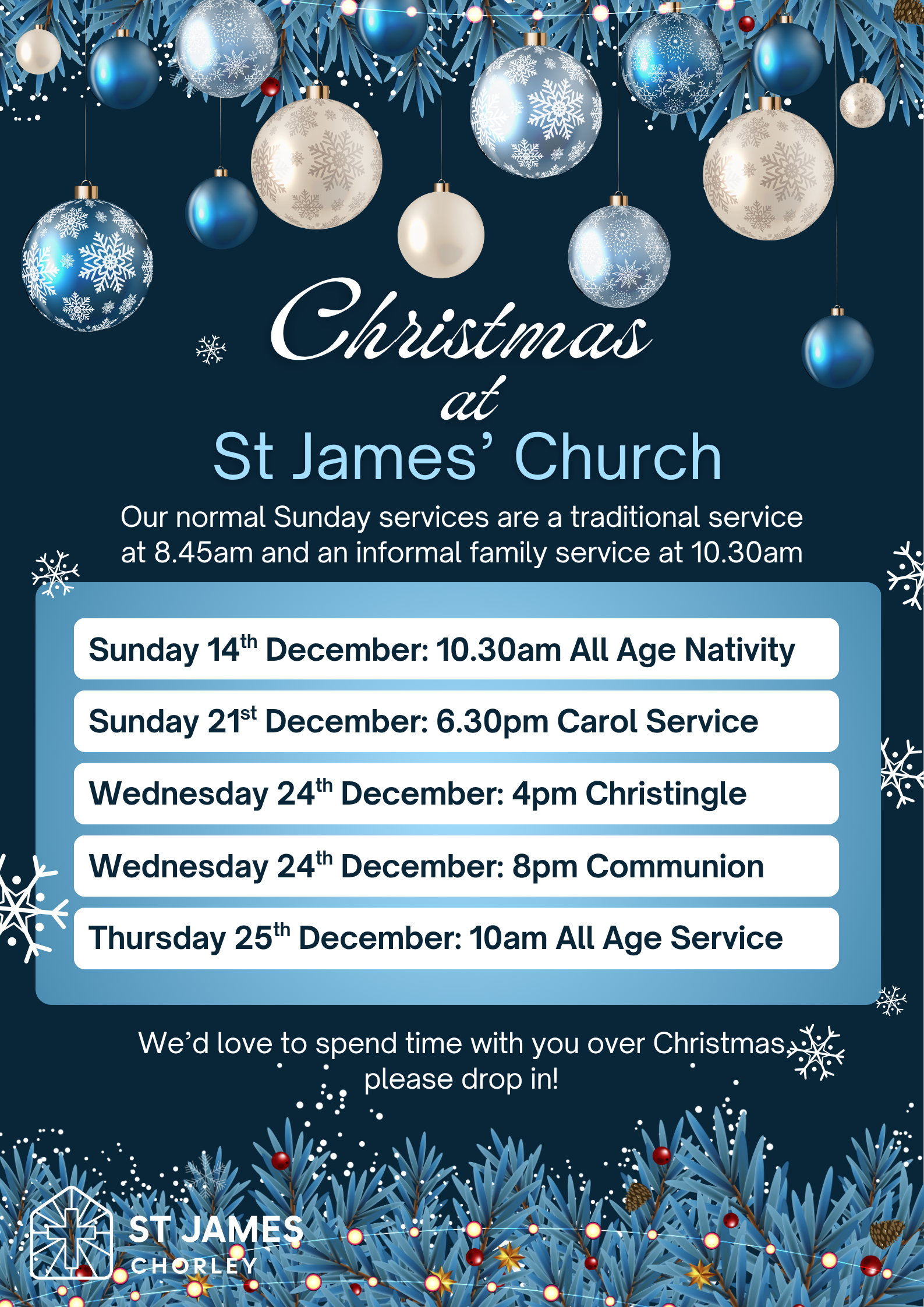 You can find details of all our Christmas services here - we’d love you to spend time with us over the festive period so please drop in!