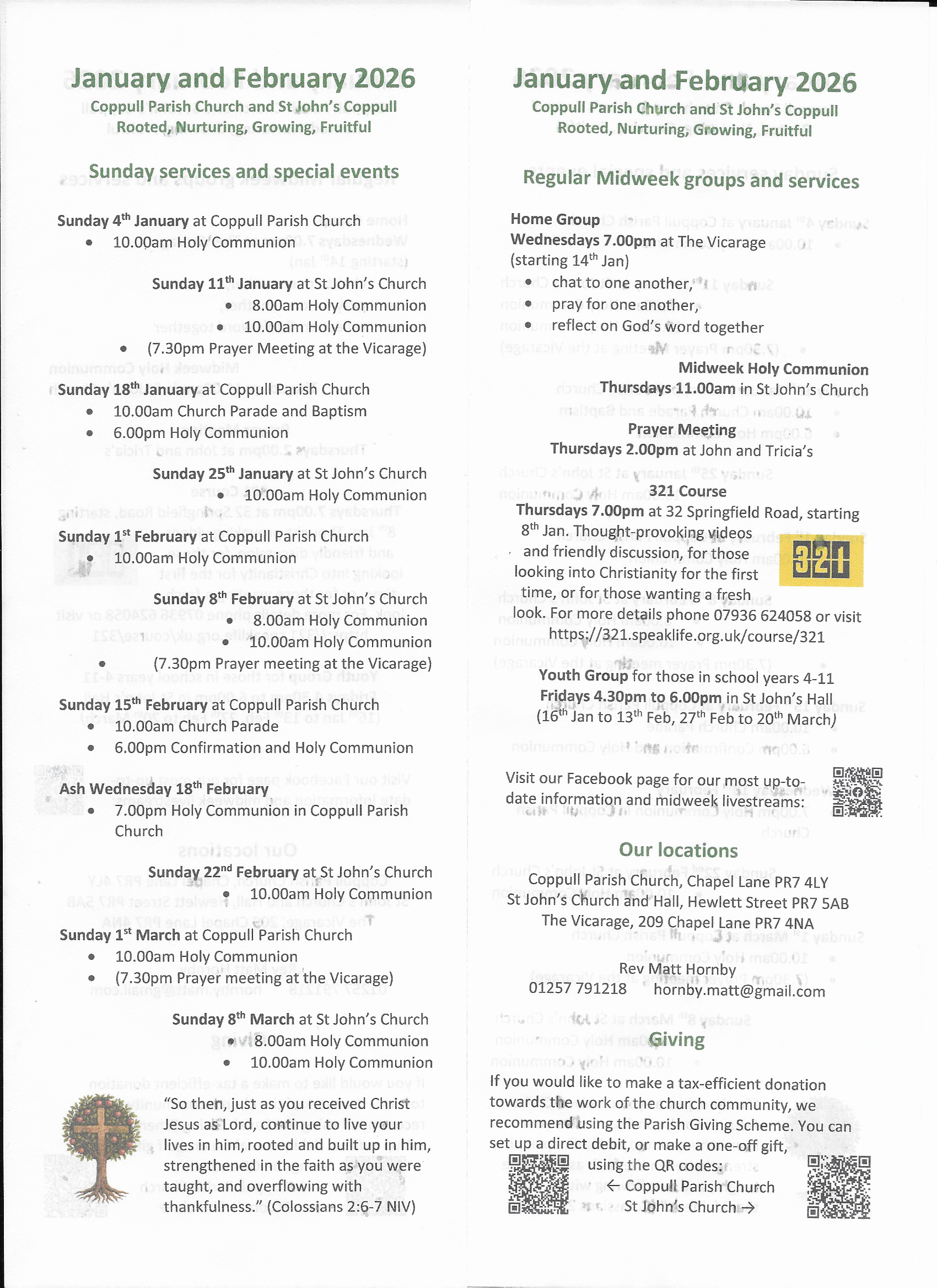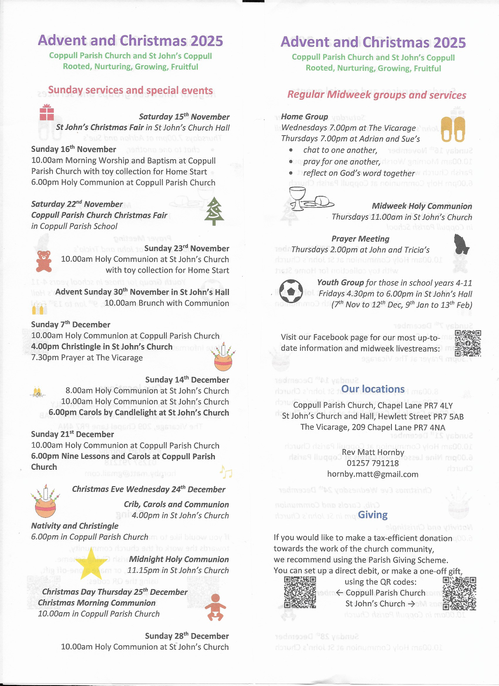 Weekly and Midweek Services, Social Events at St. John's and Coppull Parish