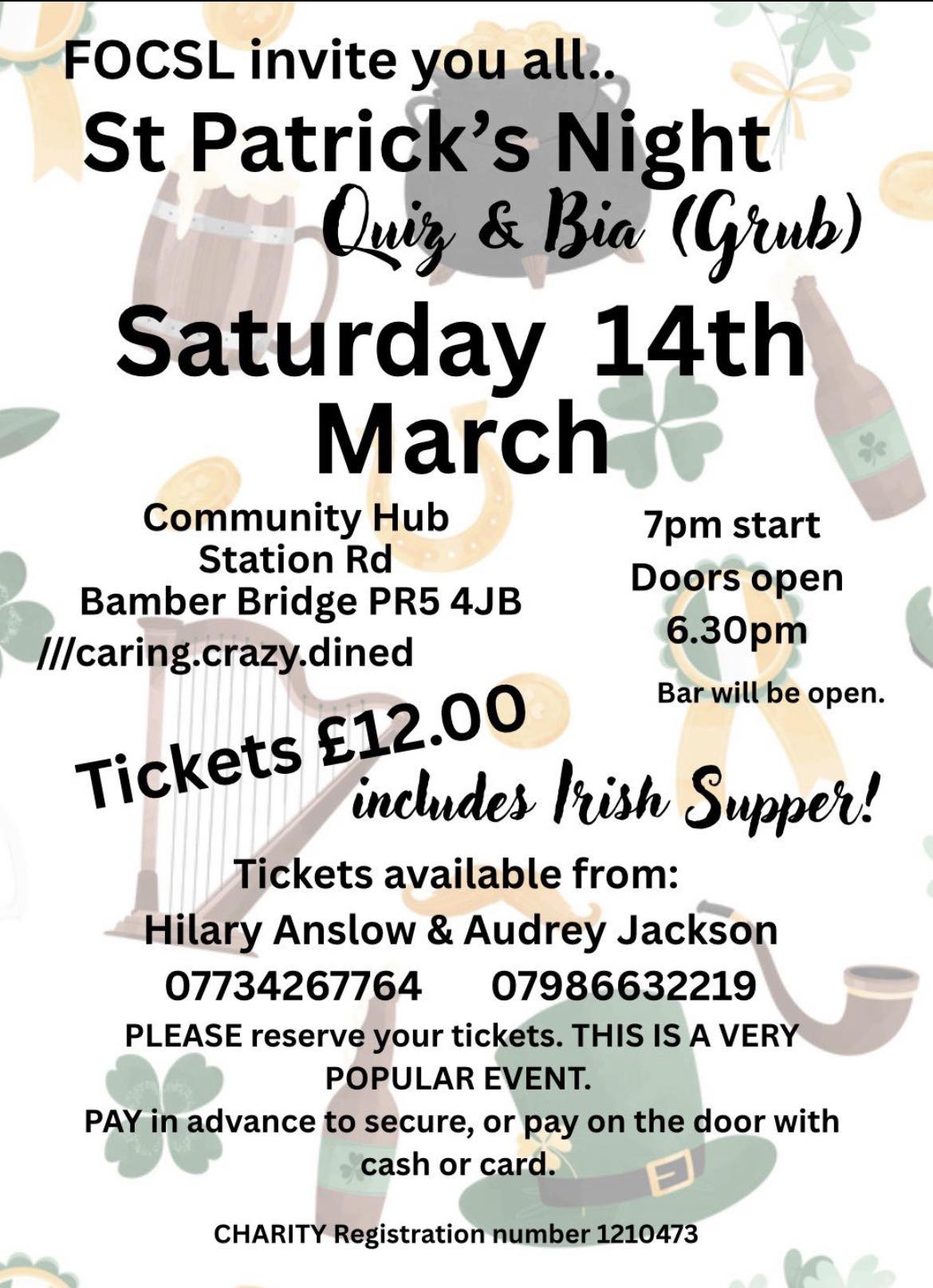 Friends of the Church of St Leonard's St Patrick's Night Quiz & Grub