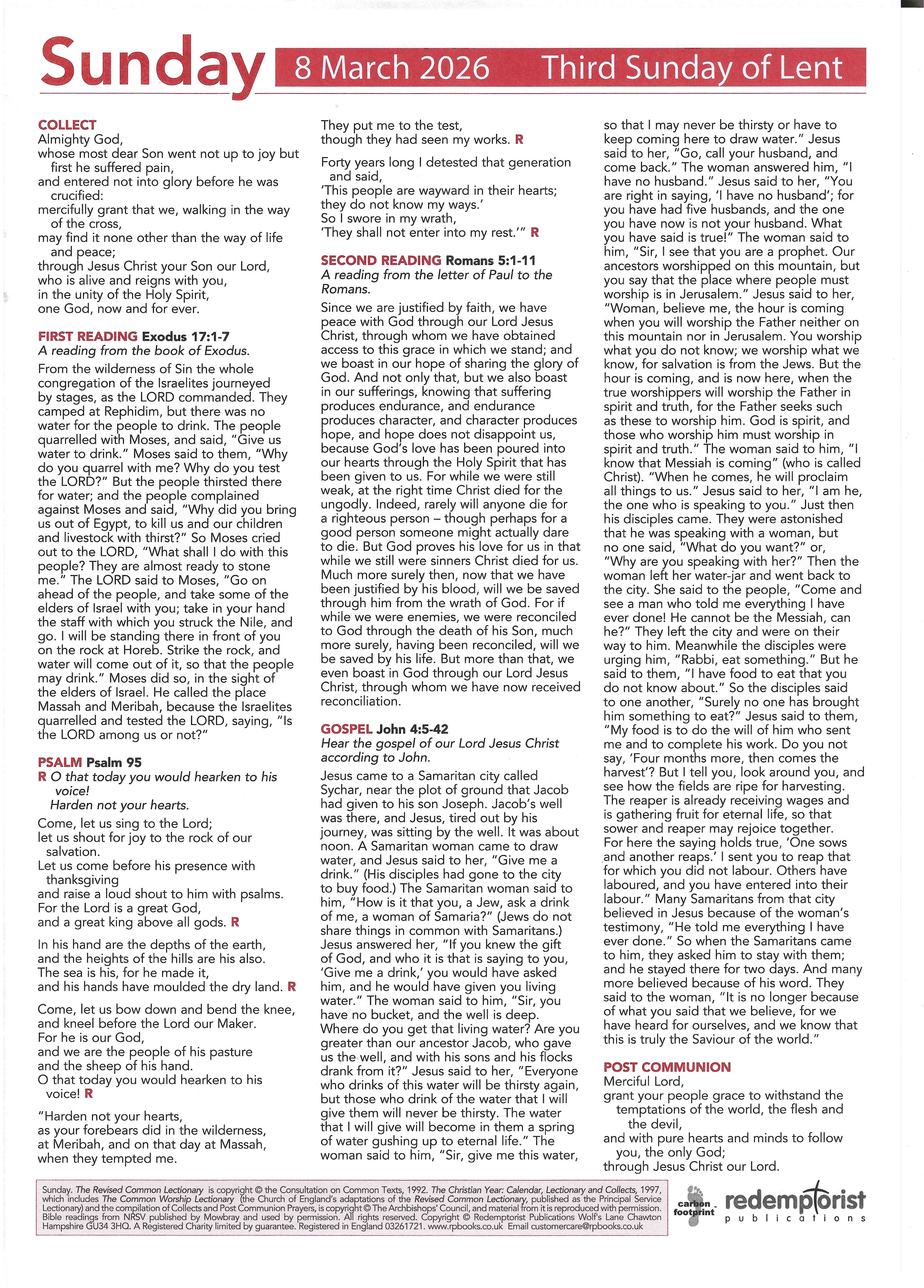Readings and collects for Sunday 8th March 2026