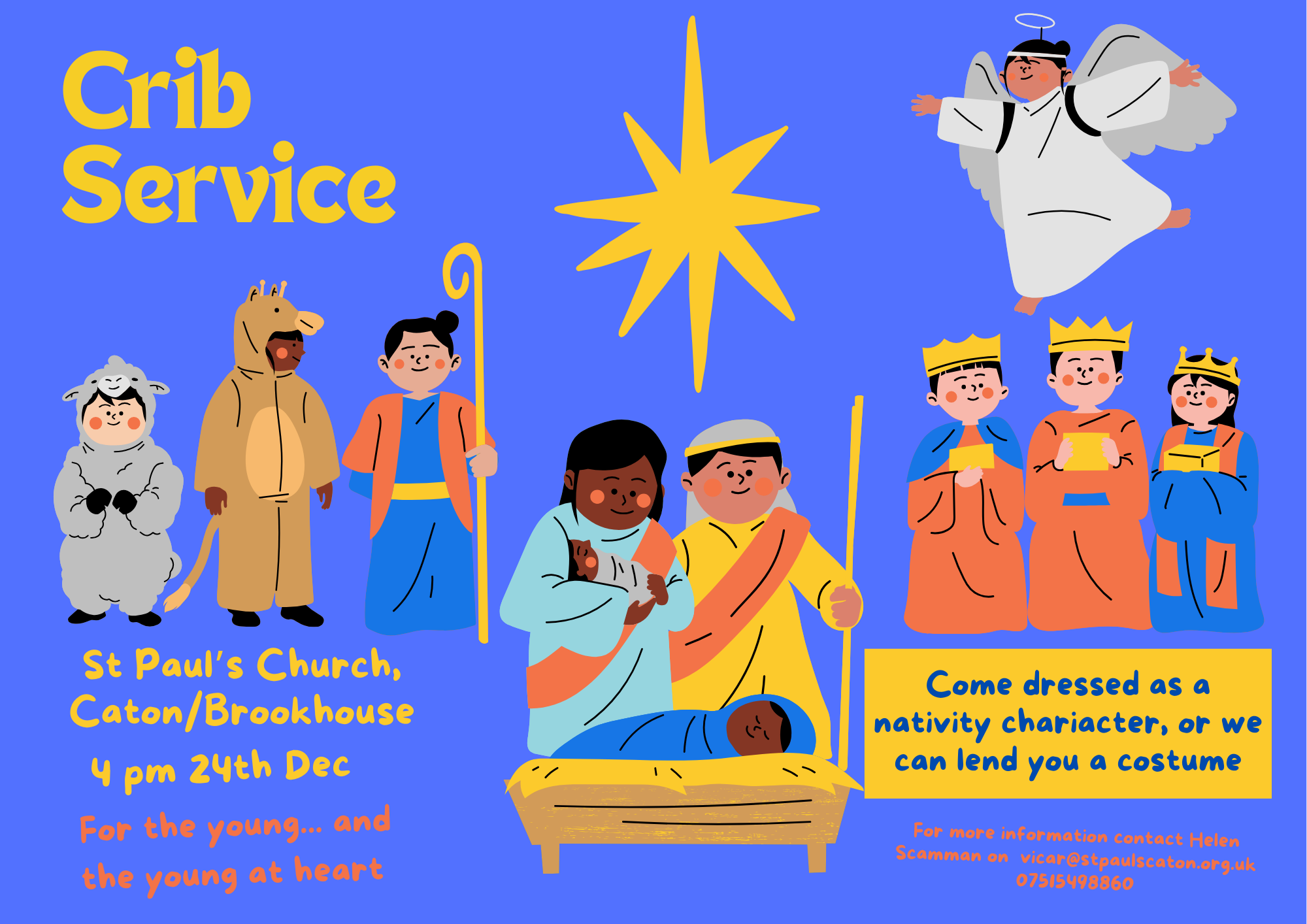 Our annual Churches Together Village Carol Service offers a wonderful opportunity to rejoice again in the message of hope which the angels brought. Join others from the village as we gather to sing carols, hear the readings telling of 'Good News of Great Joy' and listen to the Christmas message again. All are welcome, refreshments in the Church Hall after the service.