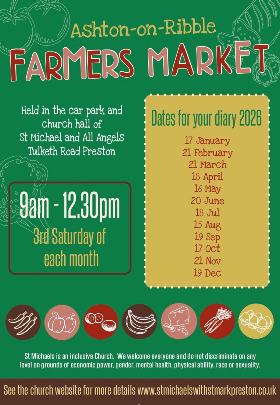 Come along and support our fabulous Farmers' market held on the third Saturday of each month. Great local produce and producers selling a variety of fresh goods and crafts. High quality, low food miles and friendly service. What's not to like?