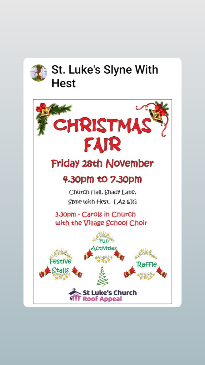 Service details can be found under the section 'Services and events'. They are currently taking place both in our Church building and  online via our facebook page; https://www.facebook.com/stwilfridshalton or on the facebook page for St Luke's Slyne with Hest.