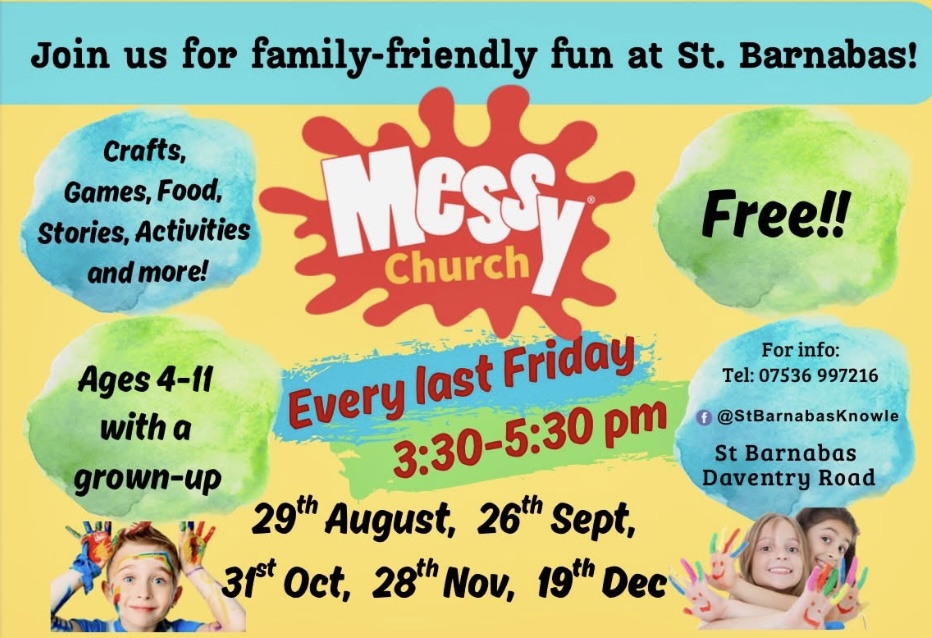 Messy church is an opportunity for families to do church together, with a lively presentation of Bible stories, crafts, games, food, & lots of fun! Our Christmas Nativity Messy Church is on 19th December.