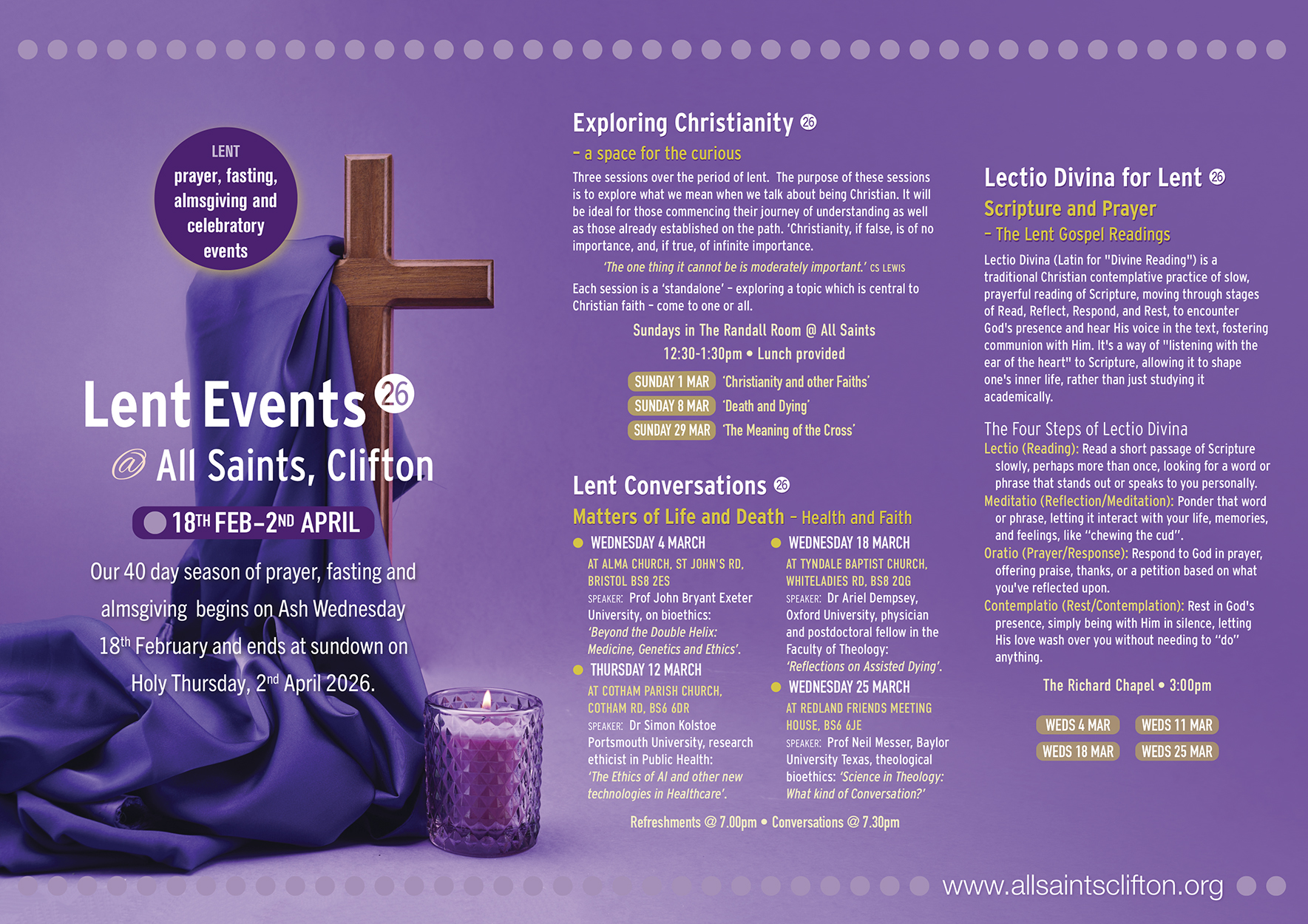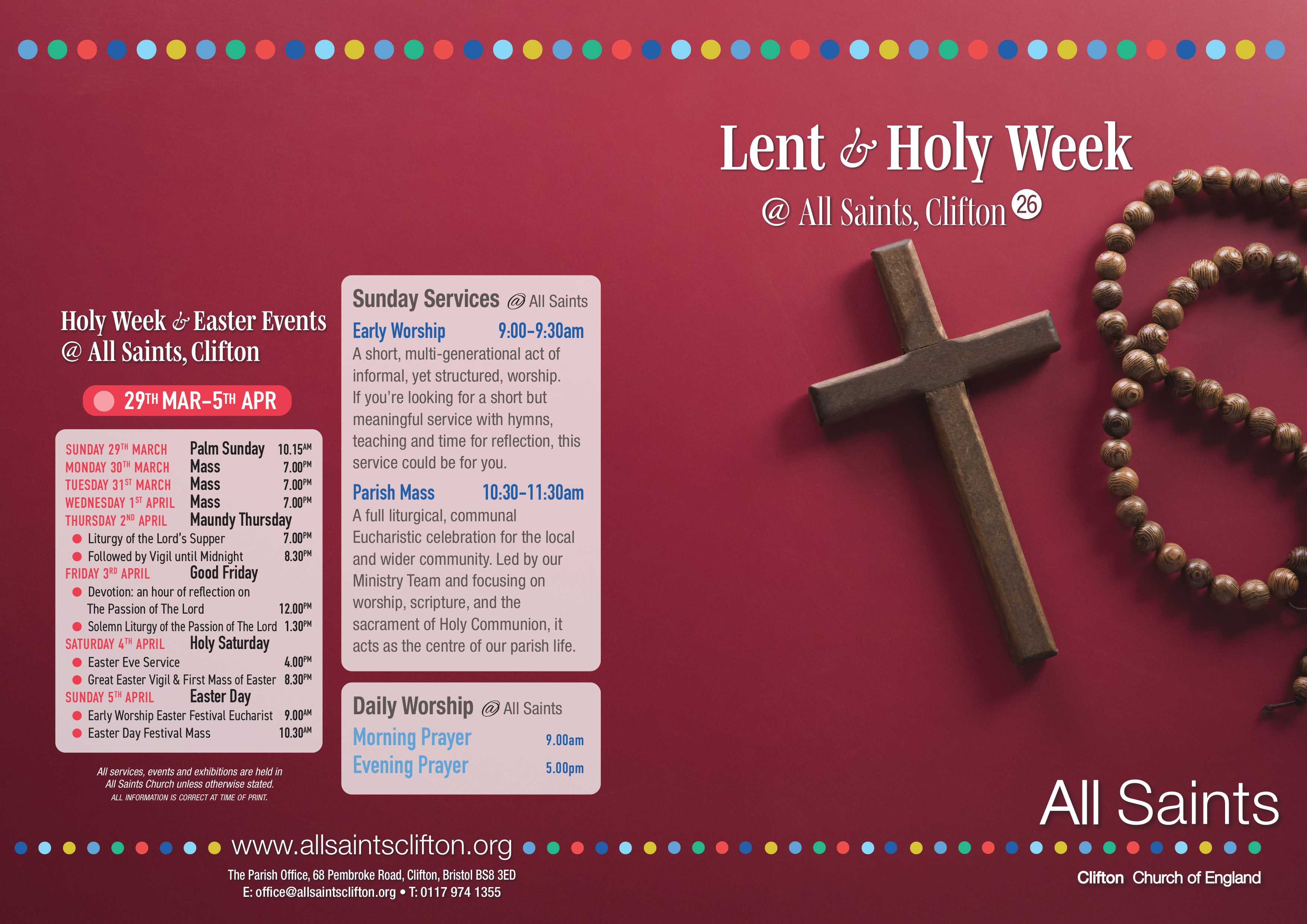 A short, simple act of worship with music, for anyone who likes an early service on a Sunday. Eucharist is on the first and third Sunday of the month and at major Festivals such as Christmas and Easter. A welcoming, friendly atmosphere with the opportunity for conversation after the service.