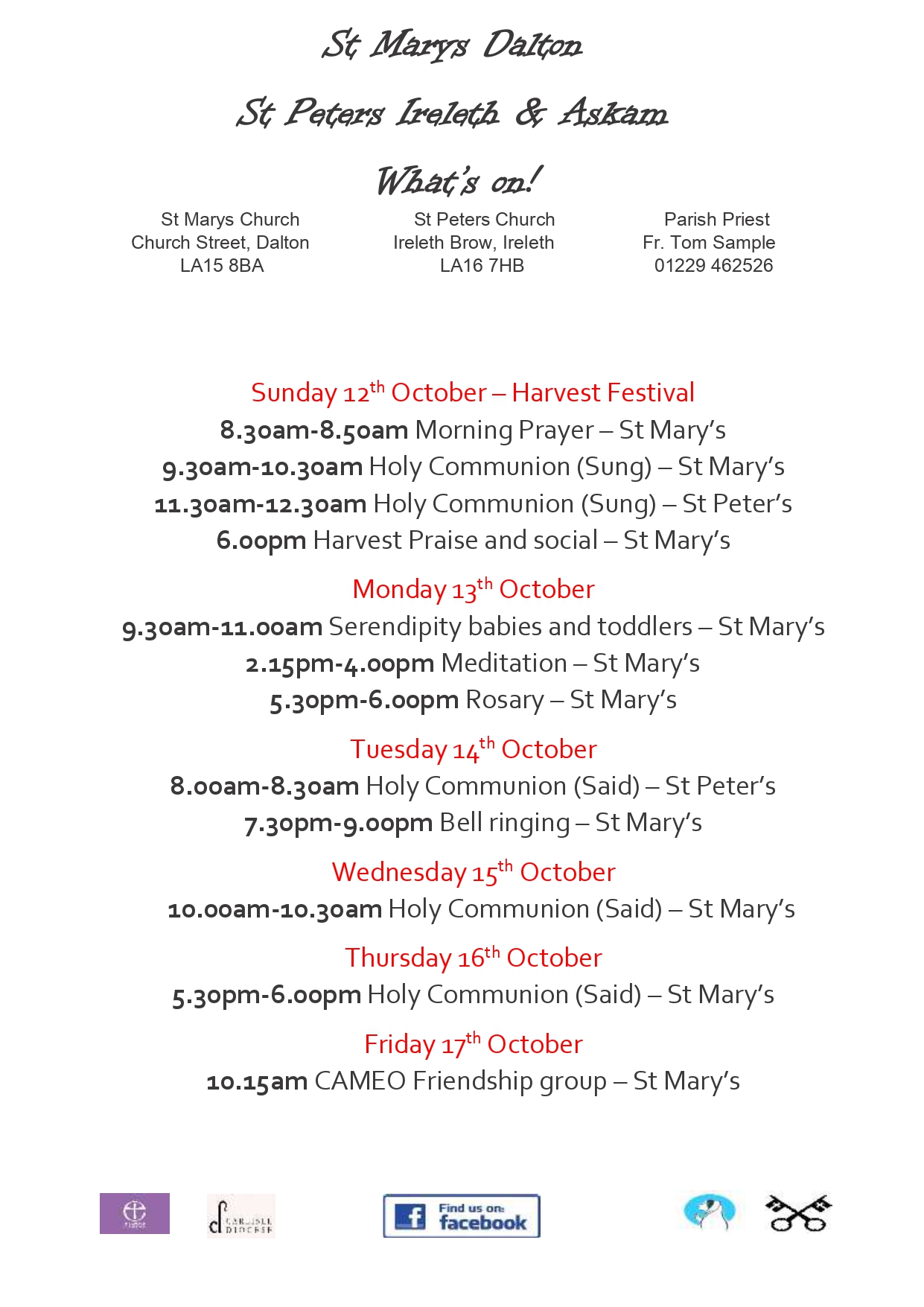 Services for w/b 12th October