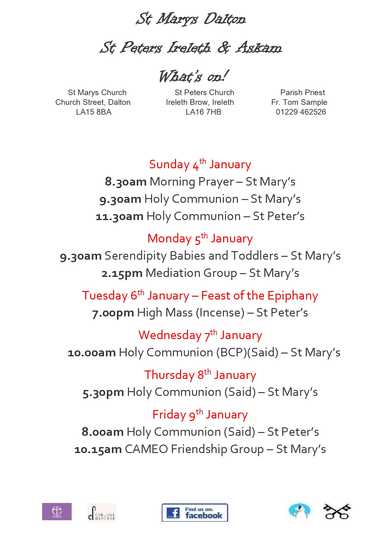 Please click the image below for service details for w/b 11th Jan. We'd love to see you!