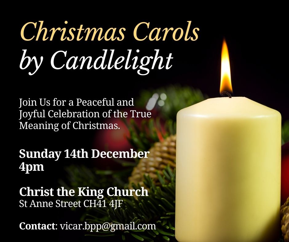 Our traditional service of Christmas carols and readings by candlelight, followed by refreshments