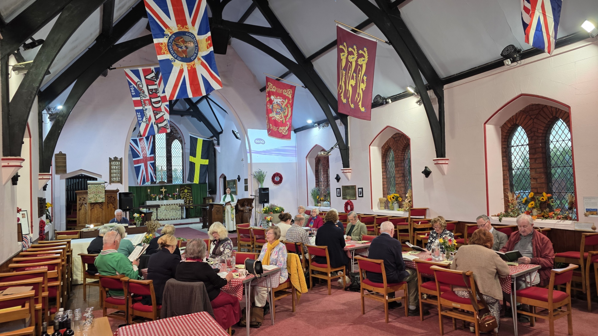 A service of celebration for the wonderful gift of the Harvest was held at St.David’s on the 28th September. We joined together to give thanks for the bounteous gifts provided by God and all the hard work of the farming community who brave the heat and the wet to bring the produce to our tables everyday. The service was followed by our own bounteous supper – tables indeed bulging with fabulous food including hot meats from our good friend John Major and a whole array of pasta and salad dishes expertly prepared and provided by Audrey and Peter Howard. And to finish, we were all treated to some fantastic home made deserts, which certainly brought the fruit of the land into our presence – complete with custard and cream of course 😂