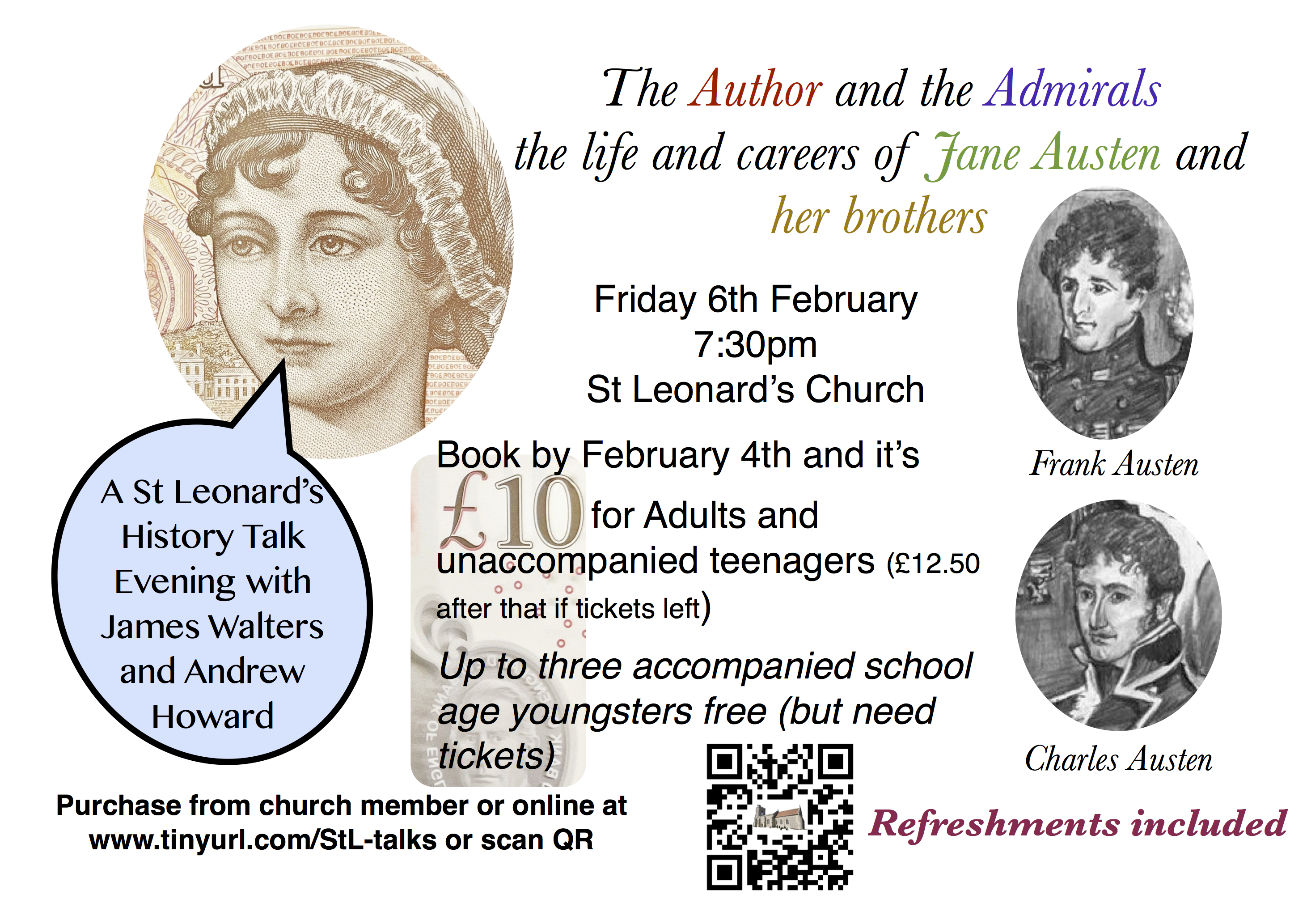 A St Leonard's History Talk evening with James Walters and Andrew Howard.£10 for adults booked by 4th February, accompanied school age teenagers free but will need a ticket.To book go to www.tinyurl.com/StL-talks