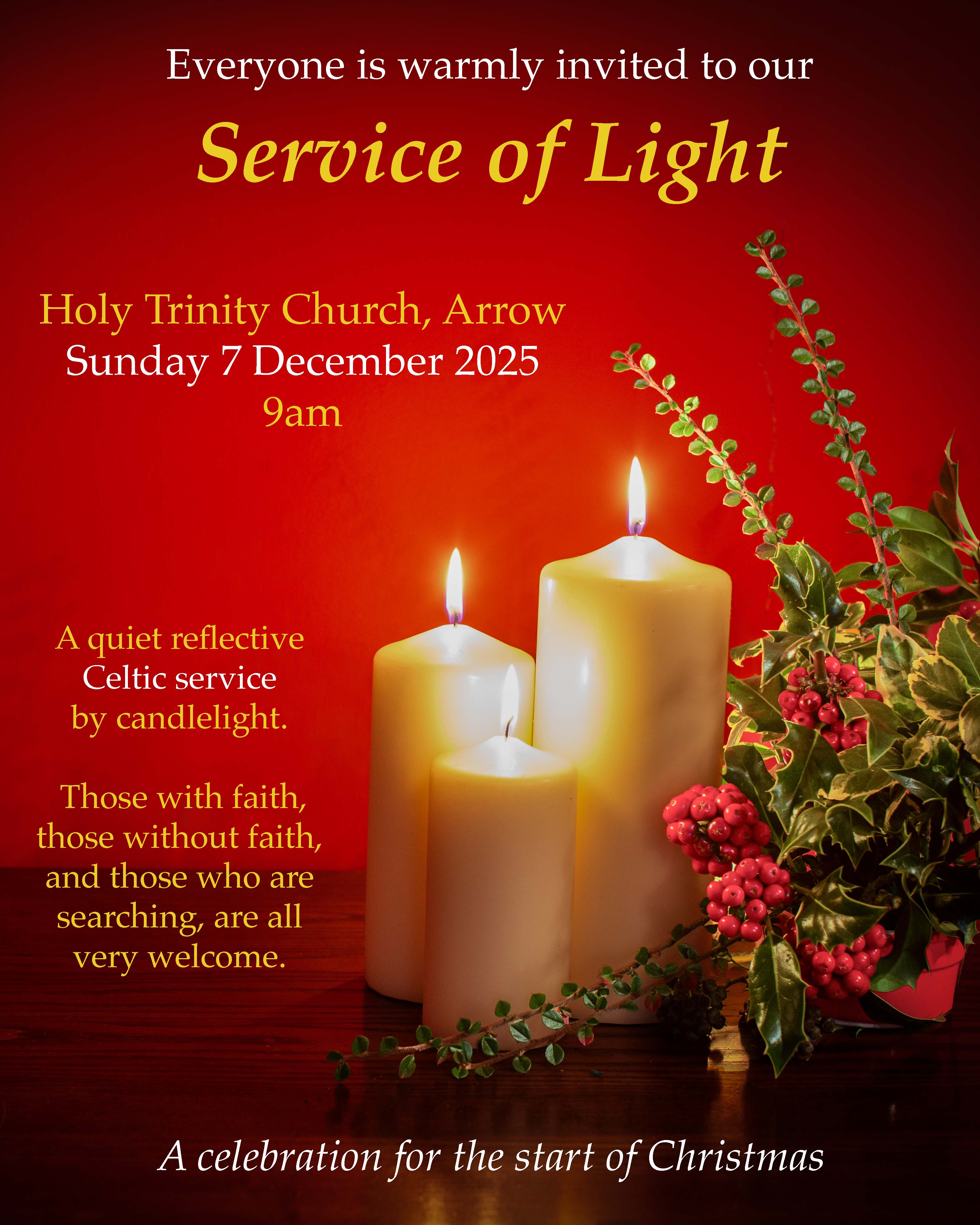 Arrow's Service of Light takes place on the 7th December, a beautiful church to start the season of Advent so I do hope you can join us!