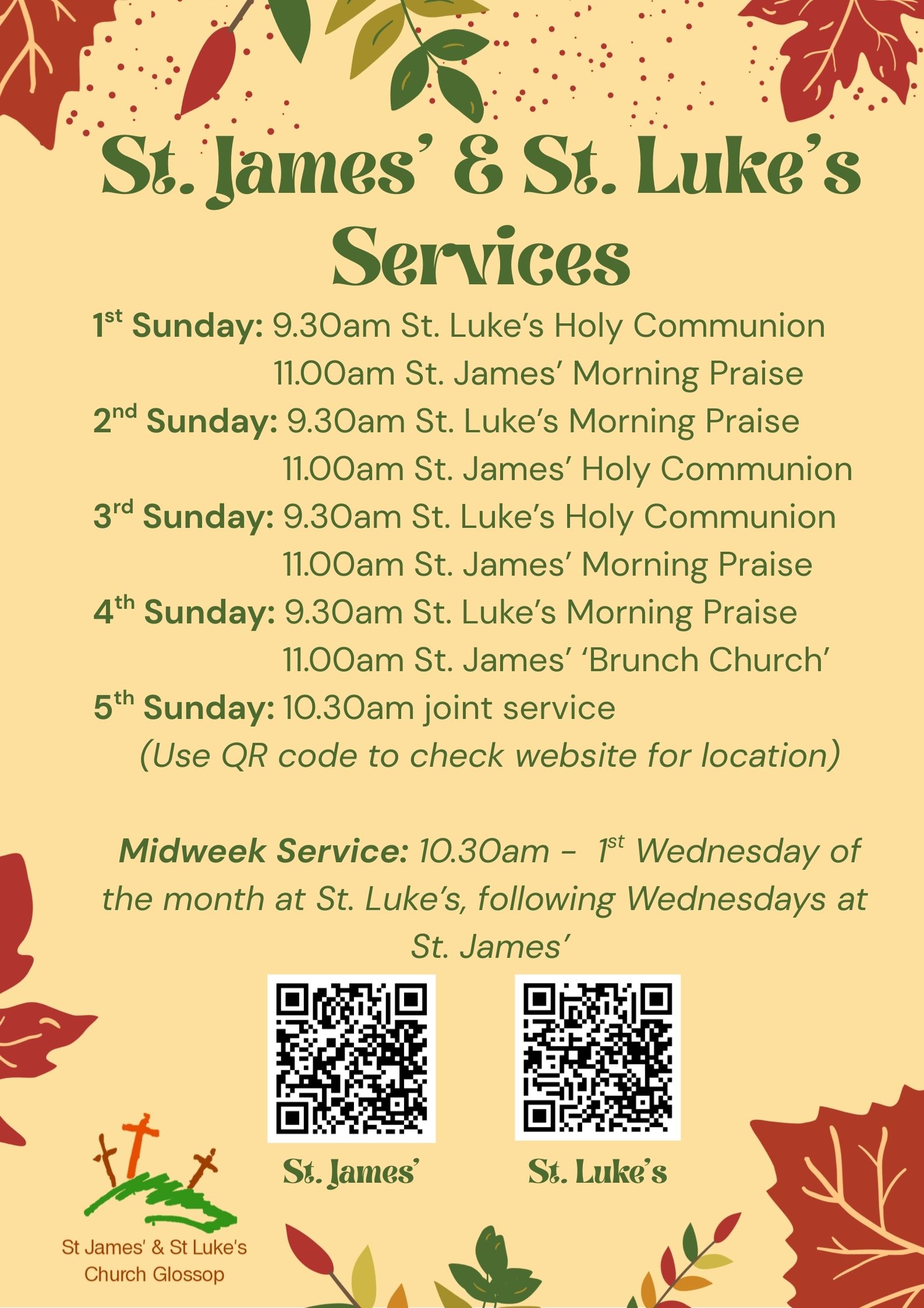 If there is a 5th Sunday of the month, we will have a joint service, alternating between St. James' and St. Luke's.