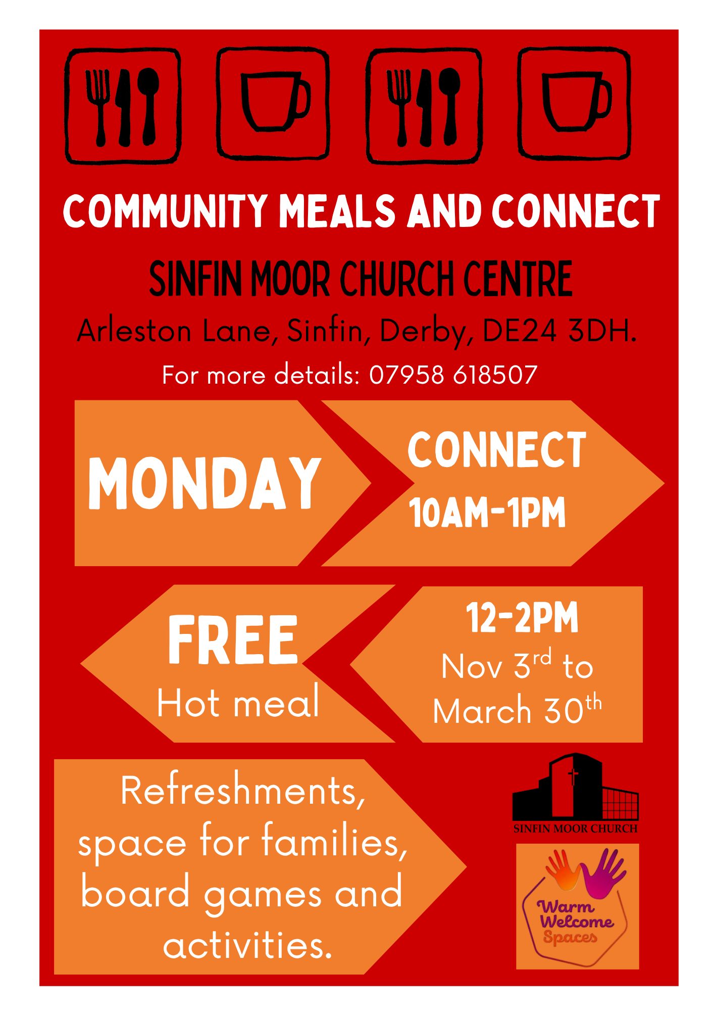 From Monday, November 3rd, 2025 the Church Centre will be open from 10 am where there will be free hot drinks and some refreshments, space for families and a free hot meal will be served around noon.