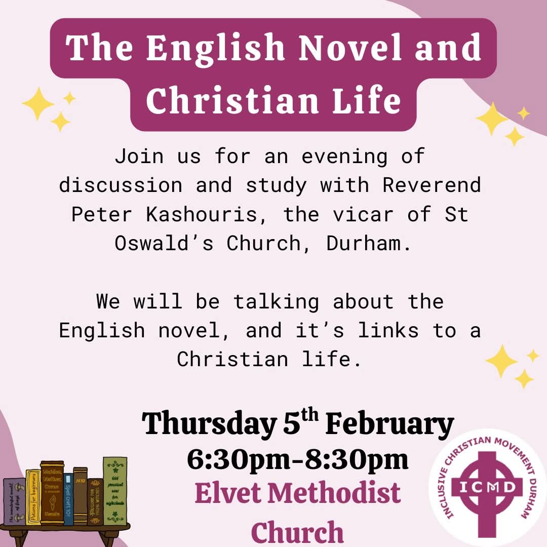 The Inclusive Christian Movement is holding a Bible Study Session led by the Reverend Peter Kashouris, Rector of The Three Saints Benefice (St Oswald's Durham, St Mary's Shincliffe, St Mary's Coxhoe and St Helen's Kelloe), and Chaplain of St Mary's College at Durham University.