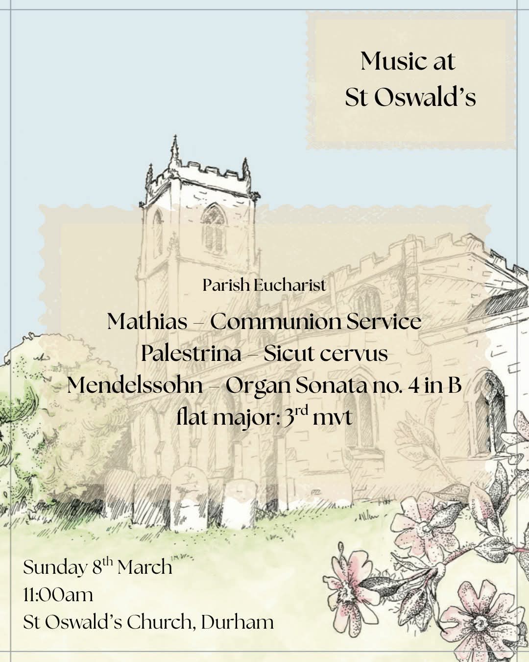 Tea, coffee and chat afterwards in the vestry.