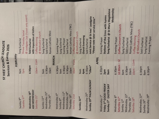 22nd March 4pm Choral Evensong; 29th March Palm Sunday 10am Joint Service at St Ives'