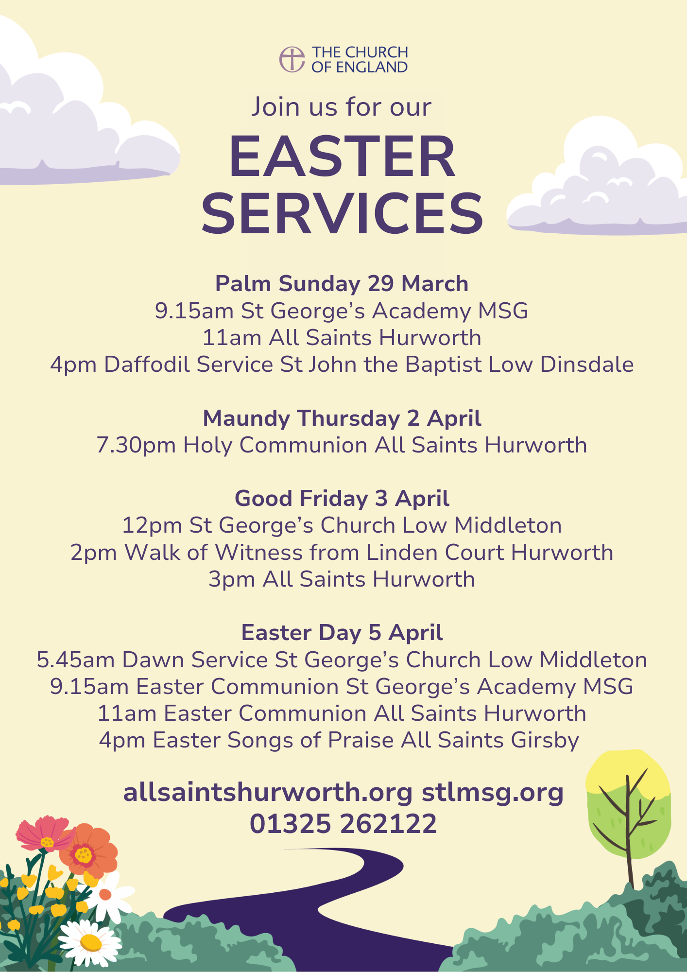 Details of our Easter services in Middleton St George, Hurworth, Low Dinsdale and Girsby: