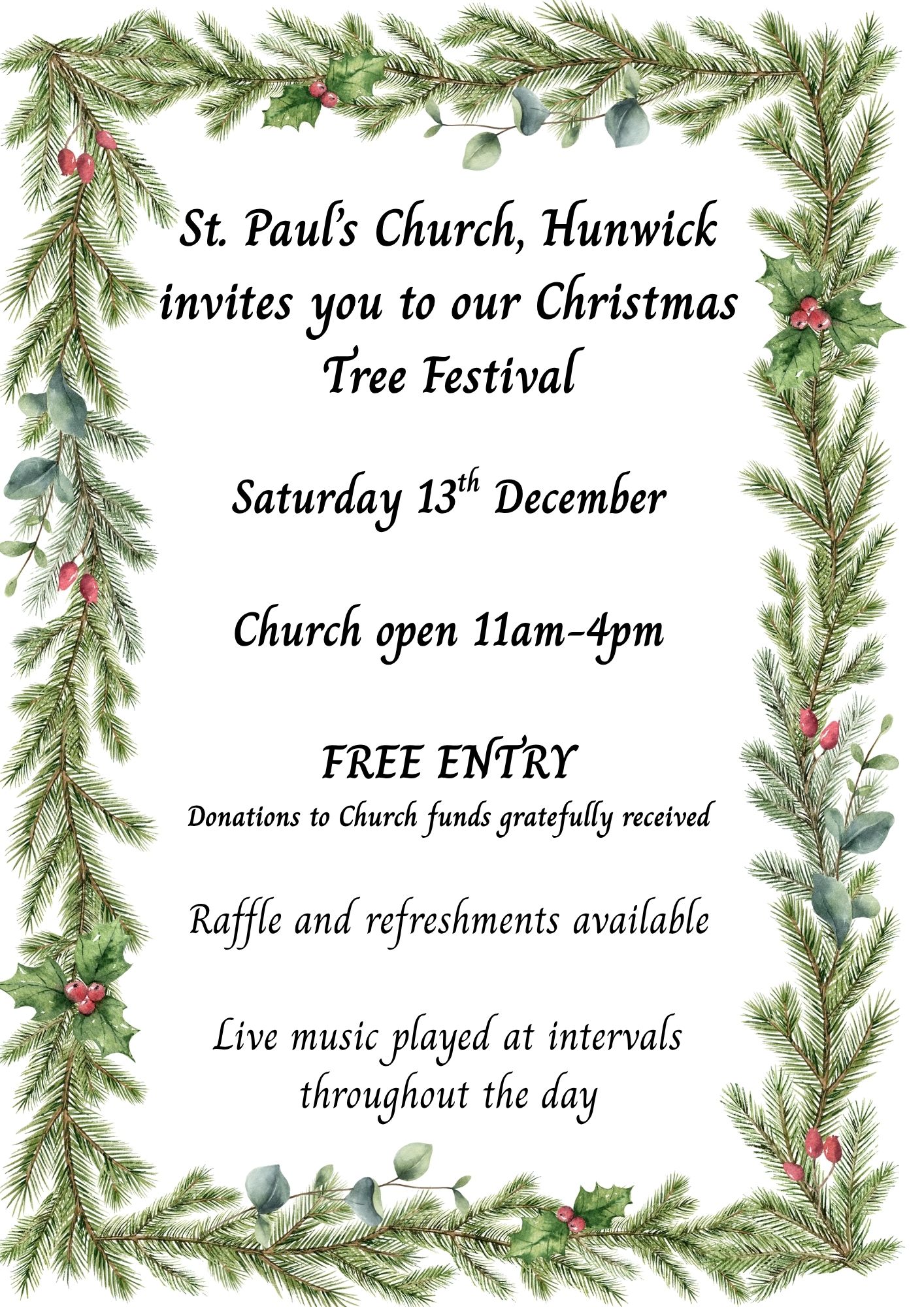 St. Paul's Church, Hunwick invites you to our community Christmas Tree Festival.