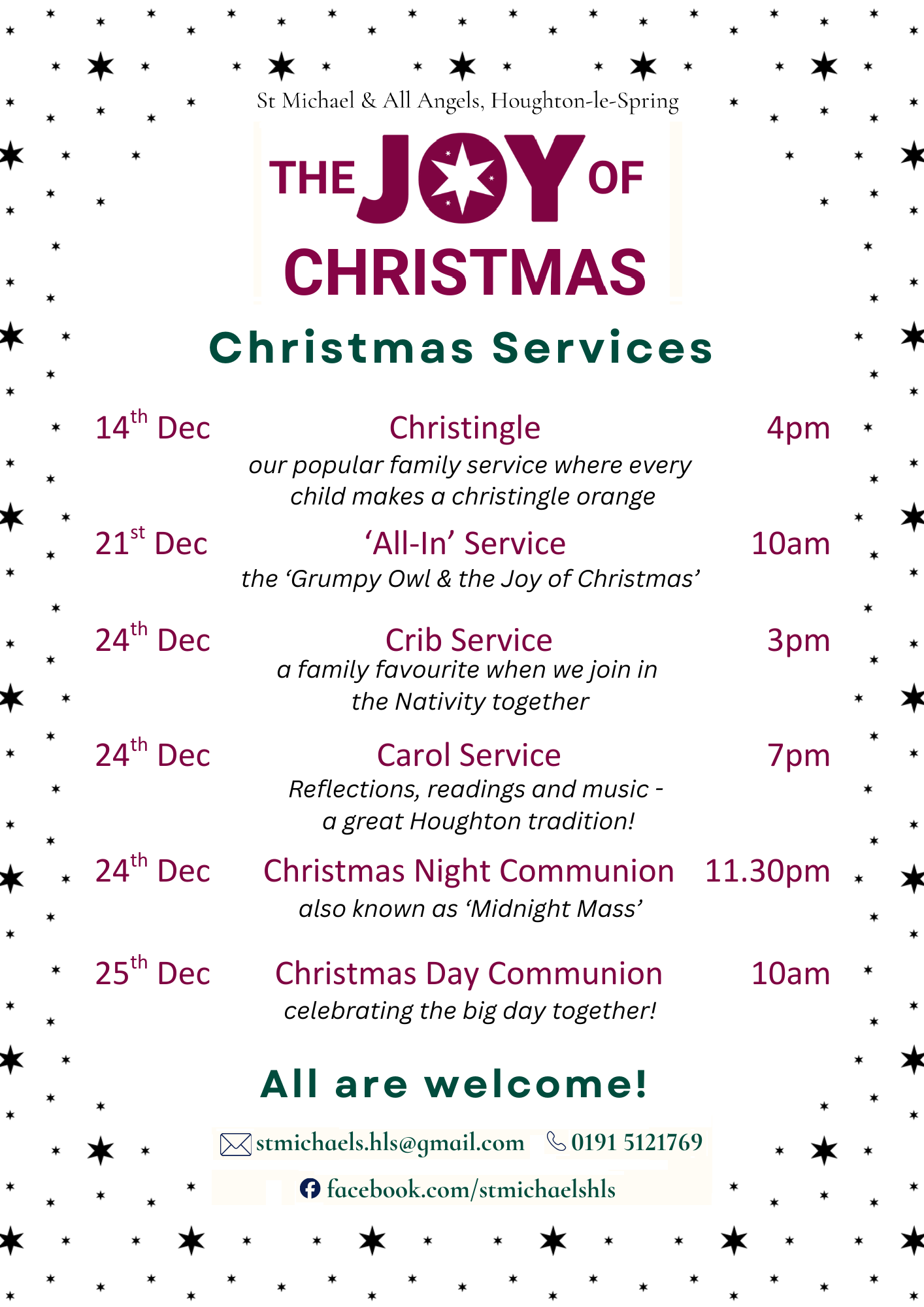 24th Dec Crib Service 3pm - a family favourite when we join in the Nativity together