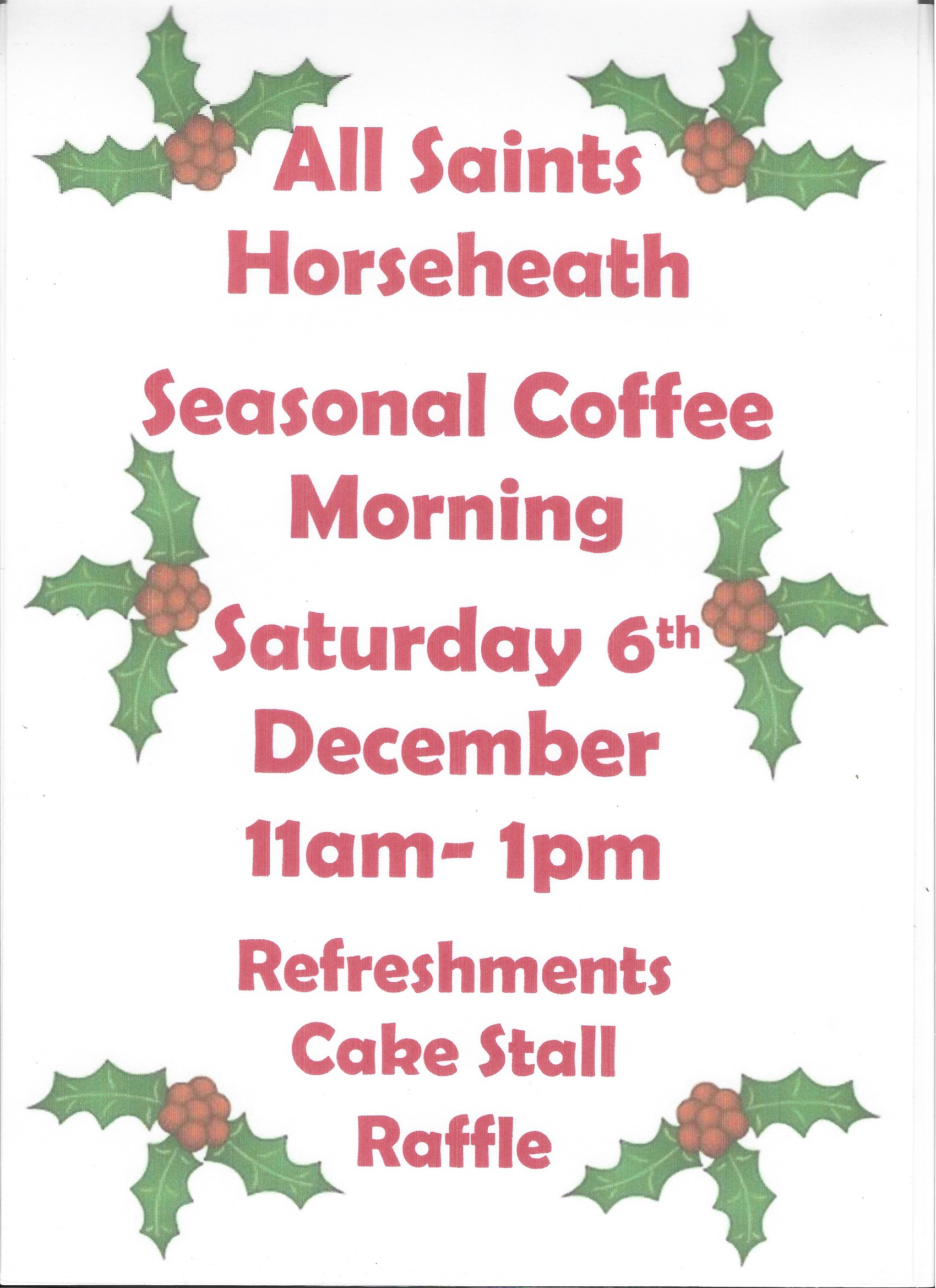 Pop in at the church for Christmas refreshments on Saturday 6th December from 11am to 1pm. Cake stall, raffle and goodies to eat. All ages welcome.