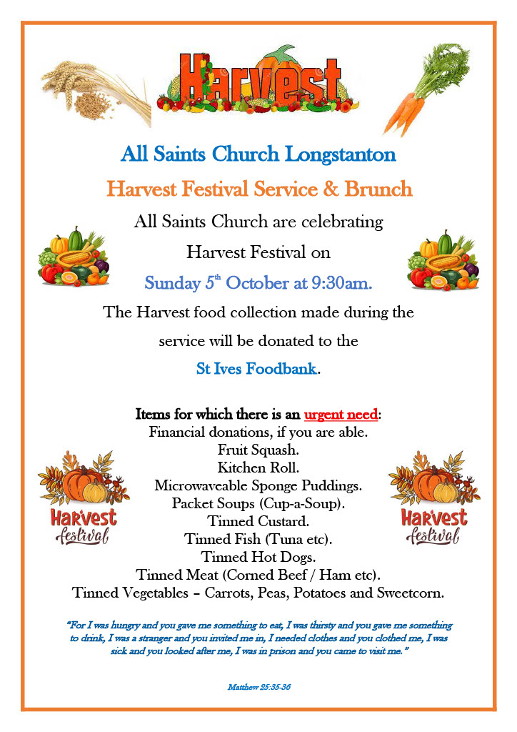 Join us for our Harvest Festival Service on Sunday 5th October at 9.30am