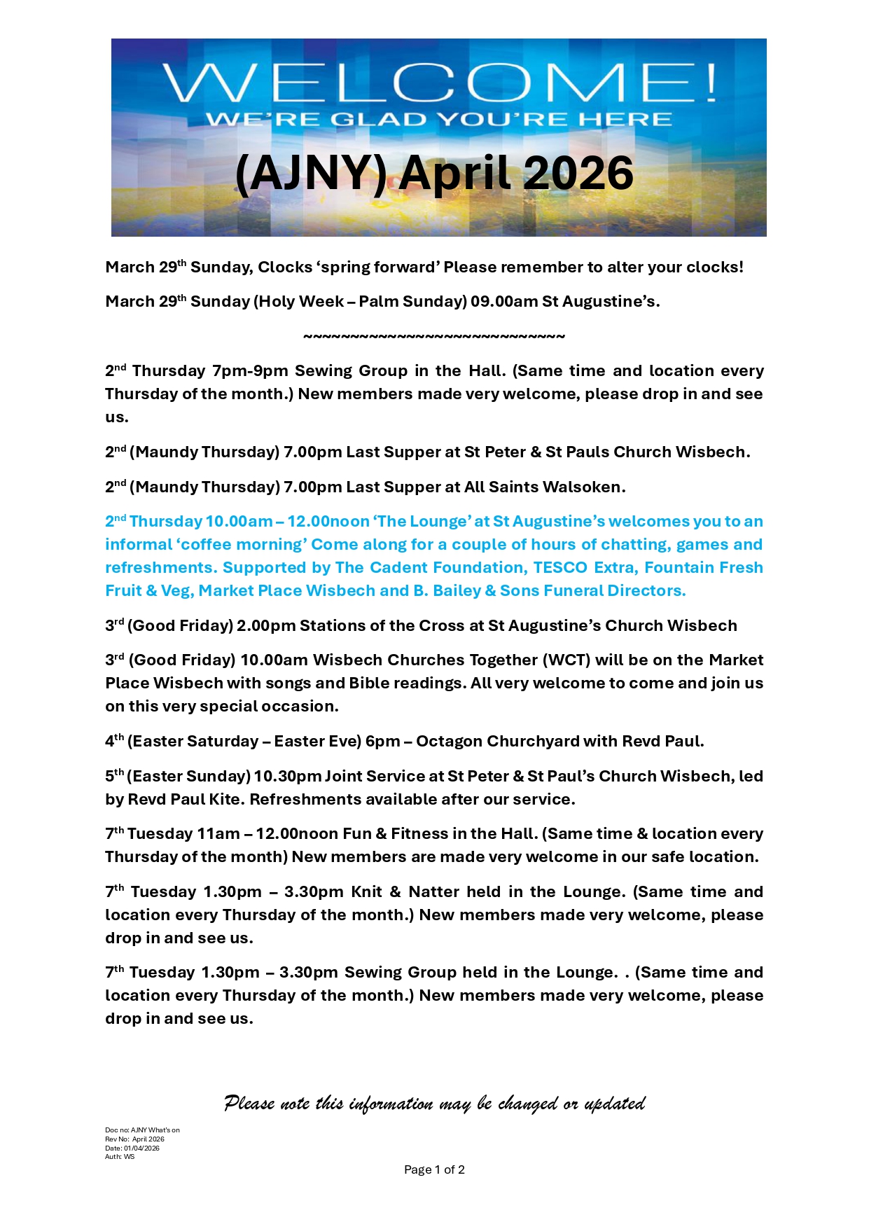 Services and events April 2026