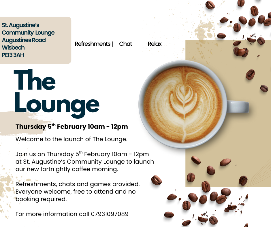 'The Lounge" is on every other Thursday commencing Thursday 5th February 2026 10.00am - 12.00 noon.