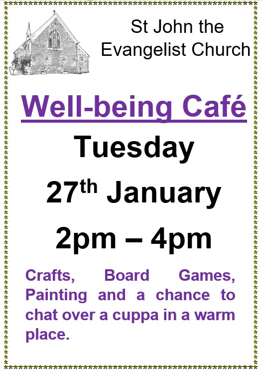 Wellbeing Cafe Tuesday 27th January 2 - 4pm