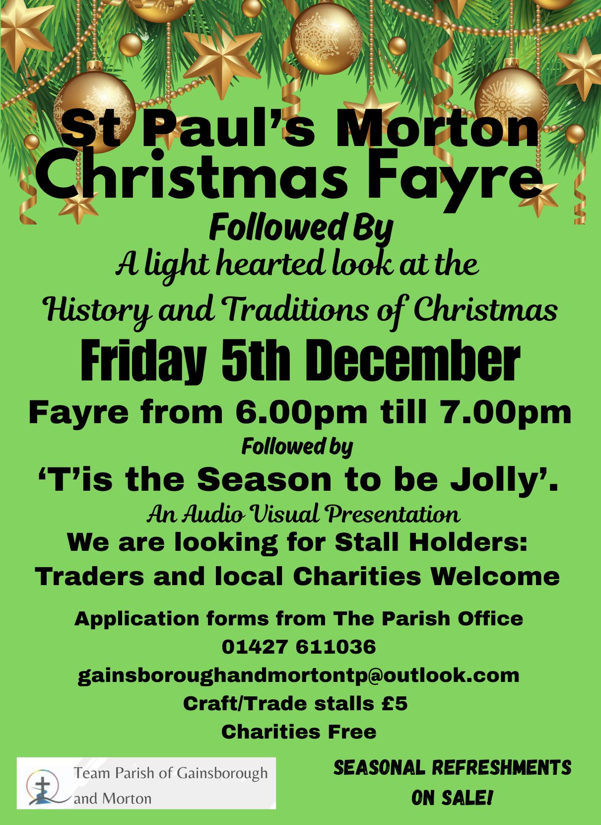 St George's will be holding their Christmas Fayre and Table Top Sale on Saturday 22nd November. Why not come along and do some early Christmas shopping. There will be stalls, refreshments and a warm welcome.