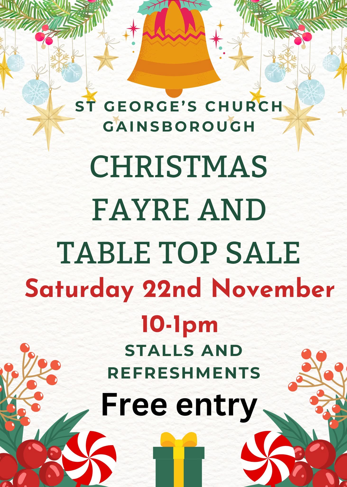 St George's will be holding their Christmas Fayre and Table Top Sale on Saturday 22nd November. Why not come along and do some early Christmas shopping. There will be stalls, refreshments and a warm welcome.