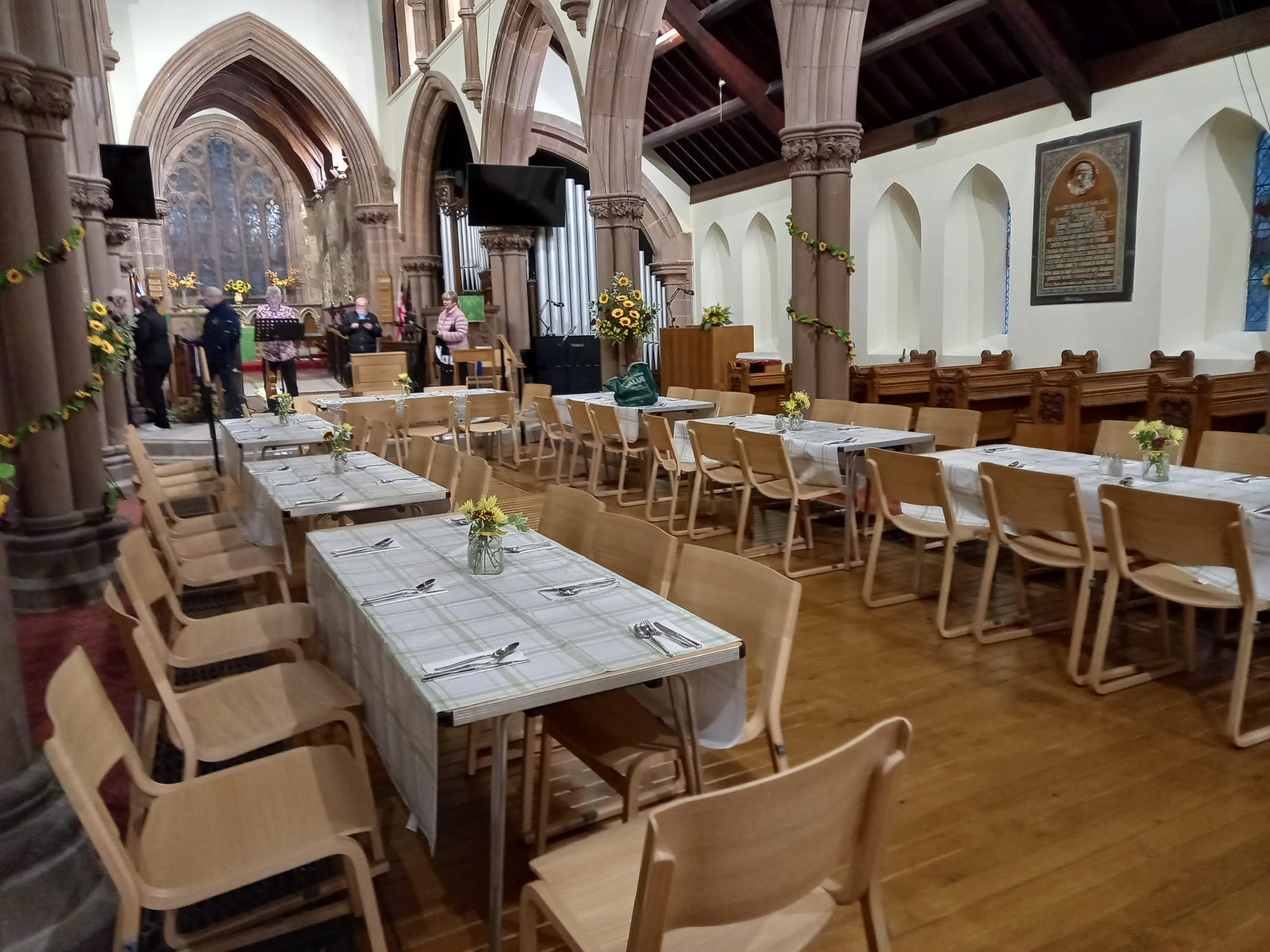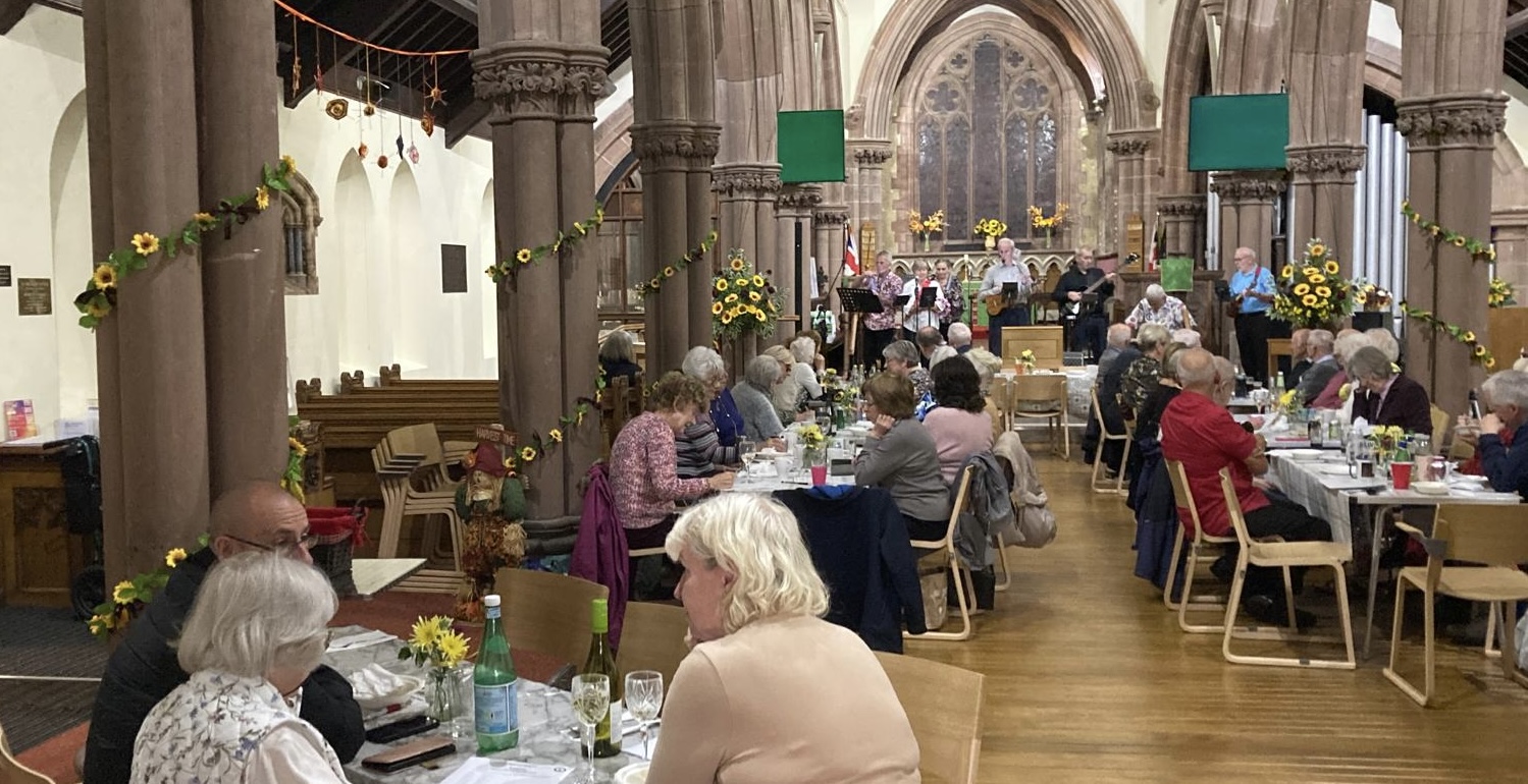 Over sixty people joined us in church for a Harvest Supper on Saturday night, entertained by the wonderful Ukulele band. Delicious Hot Pot was followed by Apple pie, and people were able to bring their own tipple. What better way to celebrate the harvest than sitting down together and sharing food with friends.