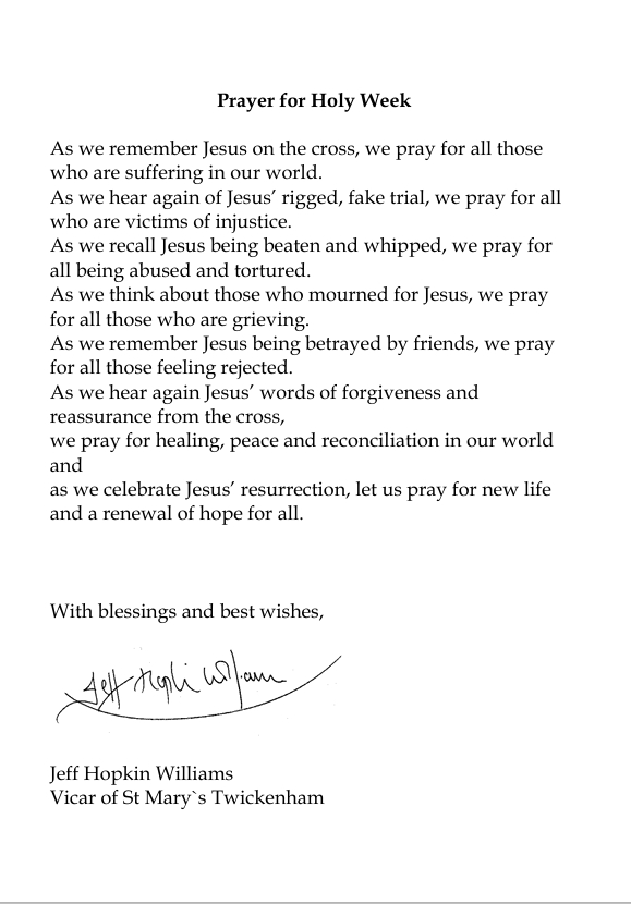 Sharing a Prayer for Holy Week and Easter from Father Jeff, plus details of our special services and events for this solemn season.Open the attached files to see all.